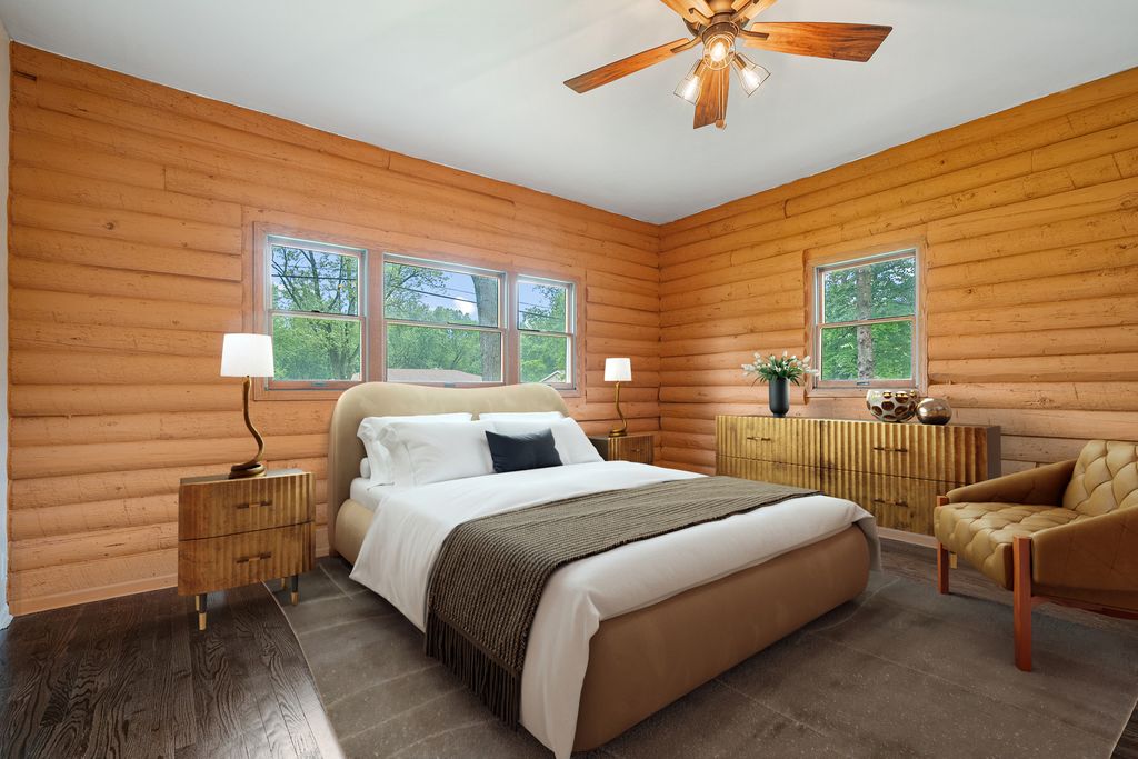 Rare Original Log Home in Illinois - Fully Updated & Move-In Ready! Don't miss this one-of-a-kind authentic log house, a true rarity in Illinois! This unique property has been thoughtfully updated with new kitchen cabinets, countertops, flooring, doors, and trim. All bathrooms and vanities have been modernized for today's living. Home features 4 above-grade bedrooms and 2 full baths, plus a fully finished basement offering 2 additional bedrooms, a full bath, and a beautiful custom bar-perfect for entertaining. Set on a huge lot with great curb appeal, this home blends rustic charm with modern comfort. A must-see! Schedule your showing today before it's gone.