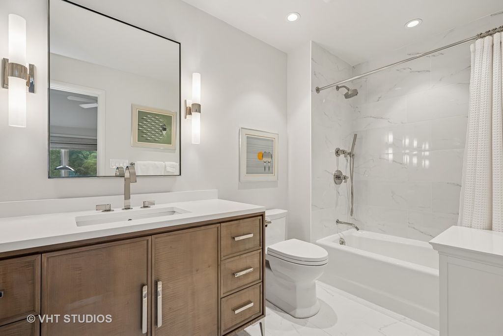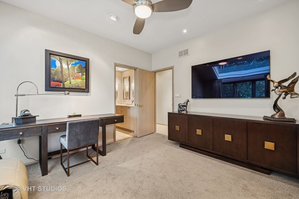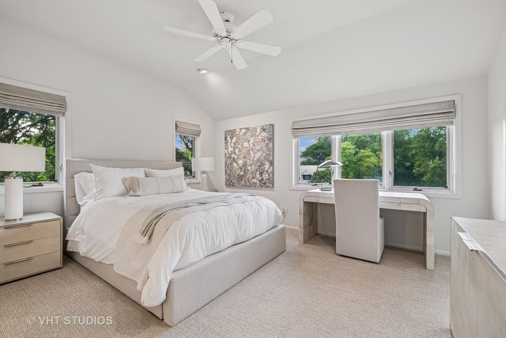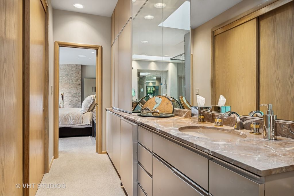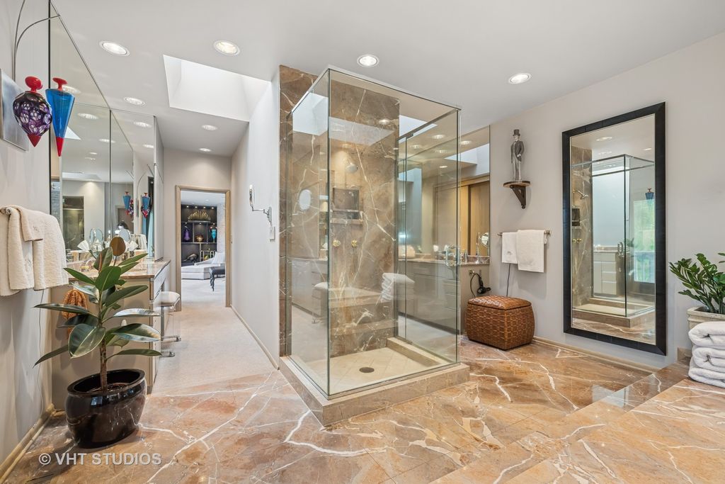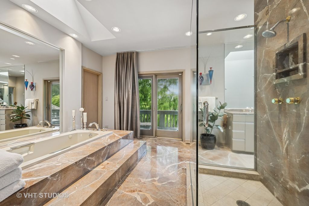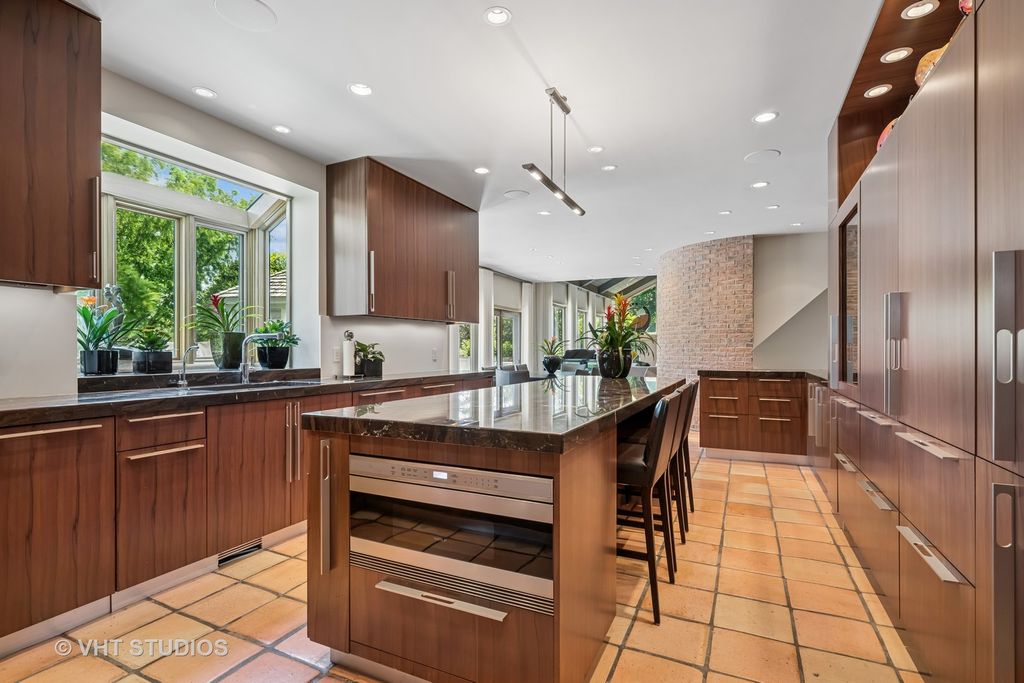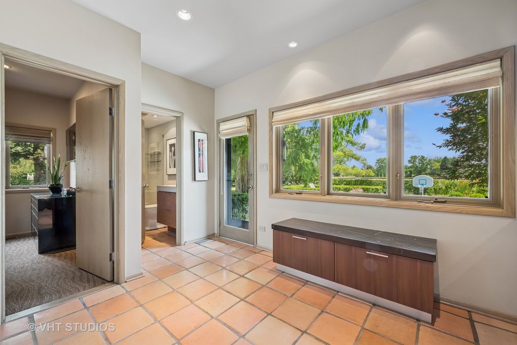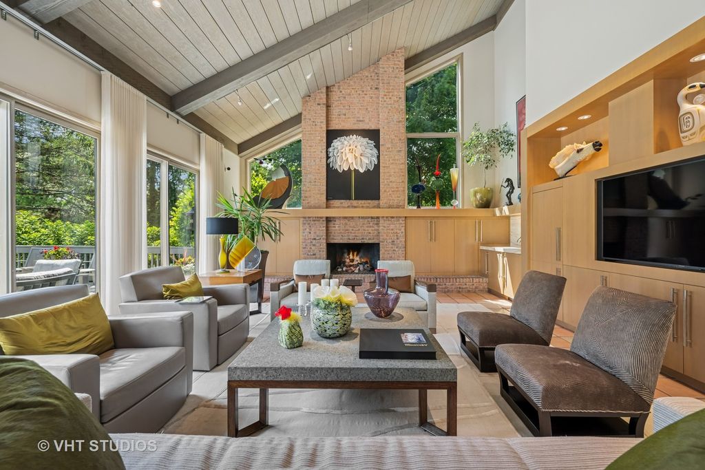 Prepare to be amazed by this extraordinary custom-built home, perfectly positioned to capture breathtaking golf course and pond views in coveted Country Club Estates. Reimagined with nearly $1M in renovations since 2020, this stunning residence offers over 6,300 sq ft of refined living space and an unparalleled outdoor oasis designed for resort-style living. A private backyard retreat awaits with a sparkling inground pool, expansive deck, and screened gazebo-perfect for al fresco dining or quiet evenings outdoors. Inside, the home impresses with a comfortable, contemporary flow and soaring two-story entry anchored by a dramatic curved brick accent wall spanning all three levels. The showstopping great room features vaulted ceilings, custom built-ins, a floor-to-ceiling gas fireplace, and sliders that open to the pool and deck. The adjacent chef's kitchen is a dream, boasting custom cabinetry, quartzite counters, an oversized island, top-tier appliances, and a sunny breakfast area with additional access to the rear deck. A large formal dining room sets the stage for unforgettable gatherings, while the private office provides a quiet space to work from home. Ideal for multi-generational living, the first-floor guest suite includes a full ensuite bath. A spacious laundry room with custom cabinetry, access to the pool area, and a three-car heated garage with epoxy flooring add function and convenience. Upstairs, the luxurious primary suite is a true sanctuary with panoramic views, a cozy sitting area with curved brick detail, dual walk-in closets, a private balcony, and a spa-like bath with whirlpool tub, separate shower, and his & her vanities. Three additional bedrooms include one ensuite and a shared Jack & Jill bath. A walk-up attic offers easy access for seasonal storage. The finished lower level is bursting with personality, offering a vibrant retro vibe with recreation, game, and exercise rooms, a custom dining booth, wet bar with seating for six, a dedicated craft room, and generous storage space. Professionally designed landscaping, beautiful terracotta flooring, circular paver driveway, and countless high-end details elevate this home to a class of its own. Located in award-winning Stevenson High School district and just minutes to charming downtown Long Grove, shopping, dining, and expressways for a quick trip to the city, this is luxury redefined.