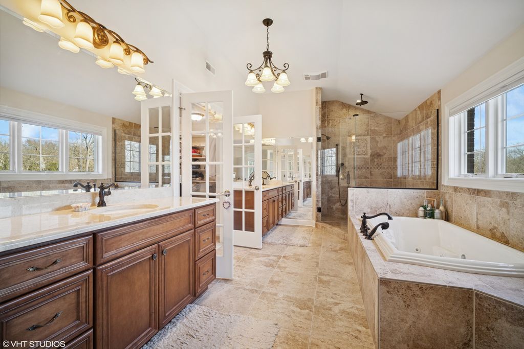 Experience the pinnacle of luxury in this stunning all-brick and stone custom home, offering over 8,000 sq. ft. of refined living space. Nestled in a peaceful cul-de-sac, this extraordinary residence boasts breathtaking wooded and water views, providing a private retreat with a backyard spacious enough to accommodate a swimming pool. Designed with sophistication and functionality in mind, the home features soaring 10-foot ceilings, intricate trim and molding, and an open-concept layout bathed in natural light. The gourmet kitchen is a chef's dream, equipped with a 6-burner stove, double ovens, and built-in refrigerator/freezer units, making it perfect for both entertaining and daily living. With six generously sized bedrooms-each with an en-suite bathroom-this home offers exceptional versatility, including a main-level mother-in-law suite and an expansive primary suite with vaulted ceilings, a private balcony, a cozy fireplace, and a spa-like bath with a soaking tub, custom walk-in shower, and a spacious walk-in closet. The primary suite also includes an attached nursery, office, or sitting room for added flexibility. Additional highlights include an oversized bonus room with stunning windows, a grand great room with a fireplace, and a fully equipped basement with a surround sound system-ideal for a home theater setup. Outdoor living is just as impressive, with two large decks overlooking the serene backyard, plus a private master balcony to enjoy your morning coffee. Practical features such as a smart home security system, laundry chute, whole-home generator, and a 4+ car attached garage with direct basement access further enhance convenience. Situated near highways, parks, and within the highly rated District 103 (Laura Sprague | Daniel Wright) and Stevenson High School #125, this exquisite home offers a perfect blend of elegance, comfort, and modern convenience. Don't miss the chance to call this your home!