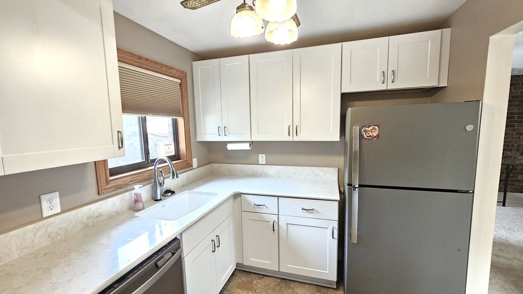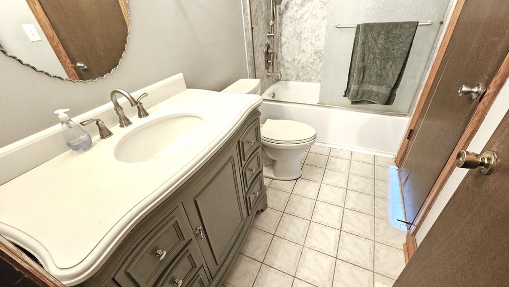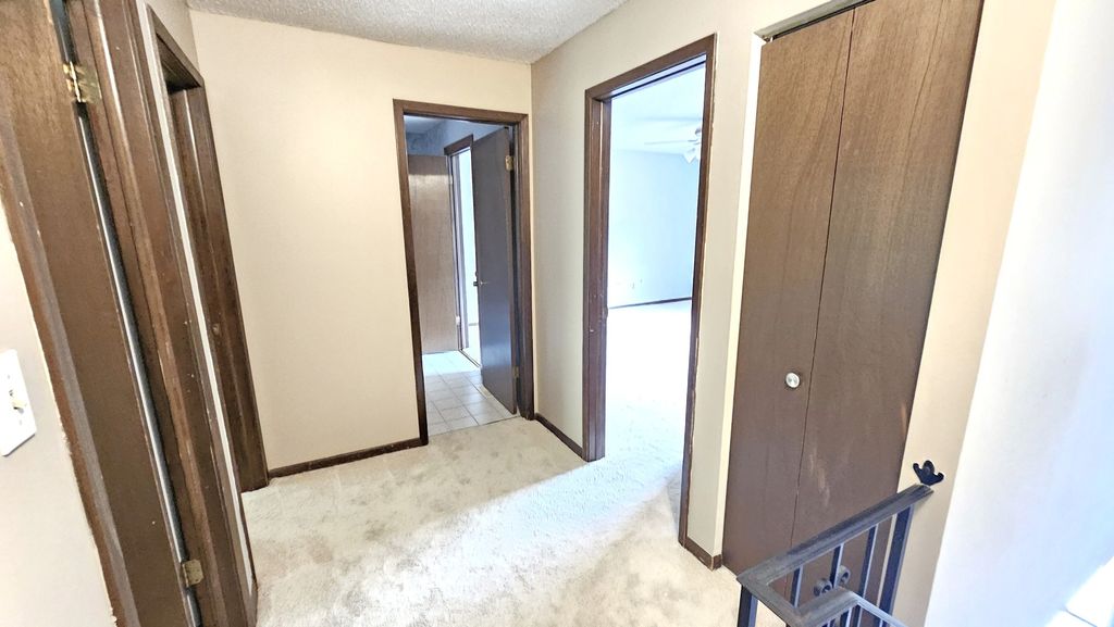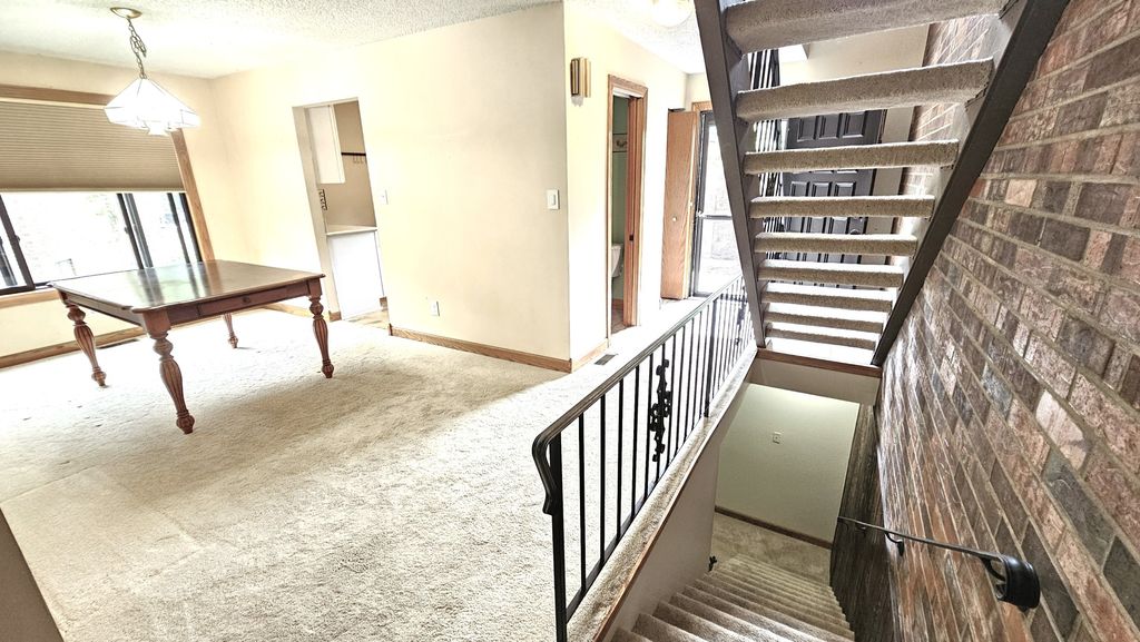 Spacious Updated End-Unit Townhome. Welcome to one of the largest 3-bedroom, 2.5-bath end units in the area offering three levels of finished living space and multiple outdoor retreats. The main level features a half bath, stylish kitchen with ample cabinet space, quartz countertops and stainless-steel appliances. A large dining room flows into the generous living room where sliding glass doors lead to a private deck-perfect for relaxing, entertaining or enjoying morning coffee. Upstairs you'll find three large bedrooms each with access to decks via sliding glass doors. The primary suite boasts double closets, a Jack-and-Jill full baths with ceramic floors and ceiling fan comfort. The expansive lower level offers large family room with great natural light from lookout windows, an oversized laundry/utility room with cabinets, a full bath with ceramic floors and a large storage space under the stairs. Enjoy your own private 15x20 concrete patio situated between the home and the 1.5-car garage, with additional parking spaces included and don't forget access to the inground pool and patio area. This unique home offers the space and features of a single-family home with the convenience of townhome living!
