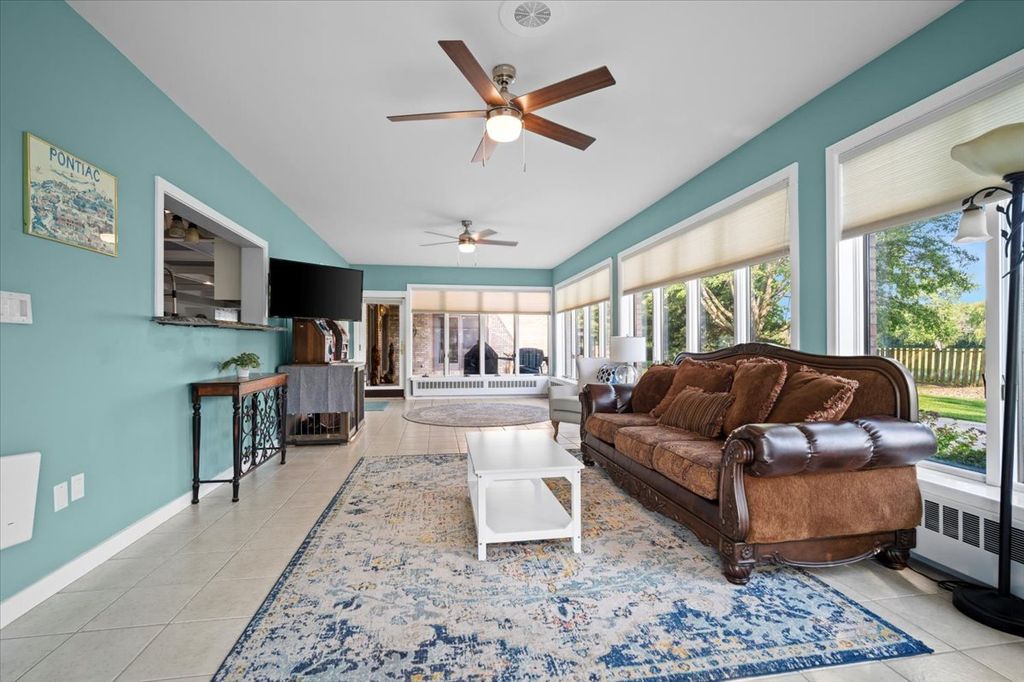 Amazing home located on the 15th fairway on the Oaks at River's Edge golf course in Fairway View subdivision in Pontiac! This all brick home has a steel infrastructure, allowing for large open concepts. Start your journey into this home by walking up the brick lined heated walkway and enter the beautiful tall double doors to the most breathtaking foyer with a two story double sided fireplace and winding stairway leading upstairs. Entertaining your family and friends has endless possibilities with this home! The gourmet kitchen was remodeled in 2019 with custom cabinets topped with quartz countertops. Utilize the dry bar area with wine fridge, and then gather and converse around the multiple islands. Sit in the dining area and enjoy company under the coffered ceilings or relax and enjoy the beautiful sunroom that spans the entire kitchen and dining room with multiple exits to plenty of outdoor entertaining areas. The extra large family room has plenty of space to accommodate large gatherings. The Primary bedroom has a walk up loft as well as it's own private sunroom and 5 separate closets. Primary bath was completely remodeled in 2019 with large walk in tiled shower with multiple showerheads, a whirlpool tub, and laundry room. All 4 bedrooms have in suite bathrooms! Large office currently being used as another family room could be used as a 5th bedroom if needed. Multiple balconies upstairs offer great views of the course. This massive 3 car garage not only has new exterior doors, but the real car lover's dream is what is found inside. A Moral Car Lift was installed which opens to the basement and allows multiple cars to be parked in the basement for storage and mild mechanical work! Also located in the basement is a 16 seat theater room with a 180" 4K high definition projector and screen wired for 9.1 Surround Sound. The home is equipped with an amazing Crestron CP4-R technology system. With multiple smart touch panels and touch screen remotes, you can access and control any video pathing, lighting, doors, fans, fireplaces, Sonos sound system, intercom, and video surveillance from multiple rooms in the house! The entire system can also be accessed remotely from your smartphone. Enjoy some sun and the views of the course on the Unlock patio or relax in the shade under the screened in gazebo. New skylights installed with shades, shades and windows open and are controlled by a remote. Seller has done so many updates since purchase, this home must be seen in person to appreciate all it has to offer! NEW Water Heater August 2025