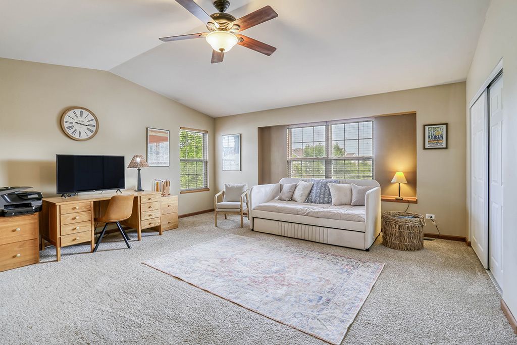 Exceptionally maintained, showing true pride and ownership with many updates throughout. This gorgeous unit is filled with tons of natural sunlight and features an open concept main level living area. The spacious living room boasts numerous windows for abundant natural light and flows seamlessly into the beautiful kitchen and eat-in area. The stunning kitchen has 42-inch cabinetry, ample counter space, stainless steel appliances, a pantry closet, and breakfast bar seating. There is also a sizable eat-in/dining area perfect for extra seating or entertaining. A convenient powder bathroom is located on the main level. The second level welcomes you with a massive loft area that can be converted into a 3rd bedroom and features vaulted ceilings and two spacious closets for added storage. The relaxing master retreat includes plenty of windows and a walk-in closet for ample storage. The second bedroom on this level also offers great closet space, and the two bedrooms share a full bathroom. Enjoy the convenience of second-level laundry. The incredible backyard with an oversized patio area is the ideal space for unwinding and entertaining. It also includes a fenced yard and a shed for added storage. Great Manhattan location, close to the Metra, downtown, Crosswinds Farms, Round Barn Farm Park, shopping, dining, schools, parks, and the annual St. Patrick's Day parade. UPDATES INCLUDE: Dishwasher (2026), NEW Furnace and AC (2025), The entire main level has been painted and 2nd level master bedroom (2025), Microwave, painted back fencing (2024) Landscaping updates & additions (2021-2025), Water Heater, Gutters in the front and side of the house & caulking of all the windows (2022), Windows in living room (on the patio wall side) & Water softener (2021) Window treatments (2020). For any discerning buyer looking to move right in!!