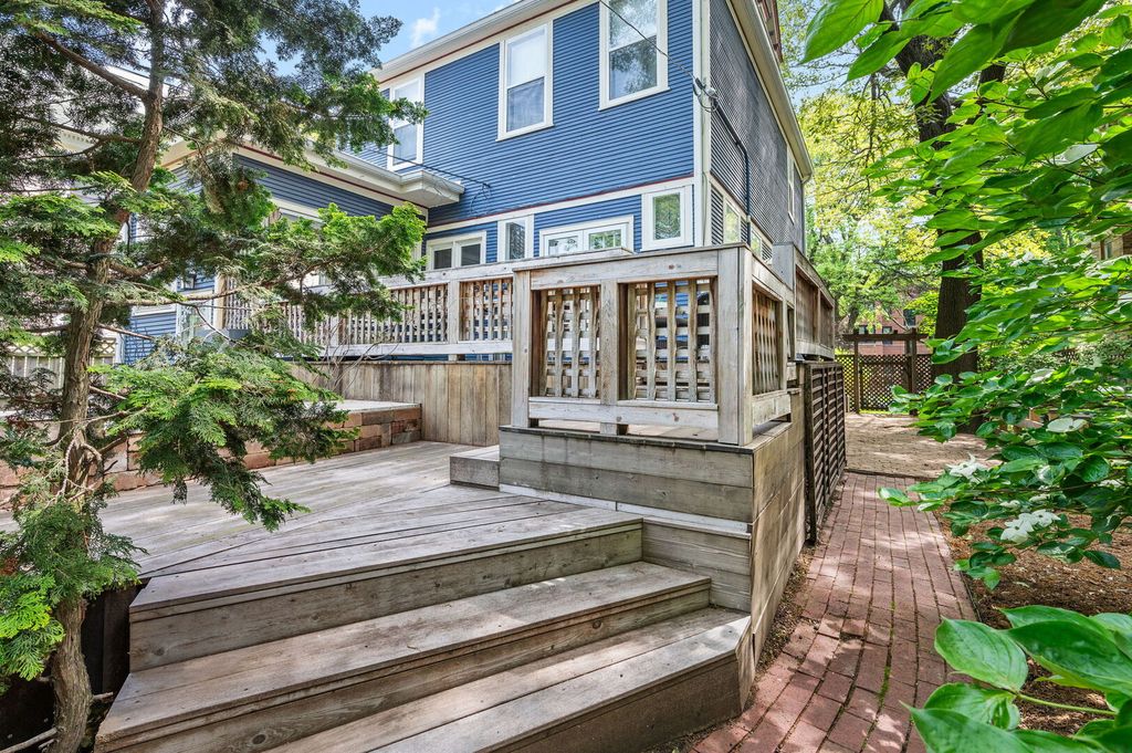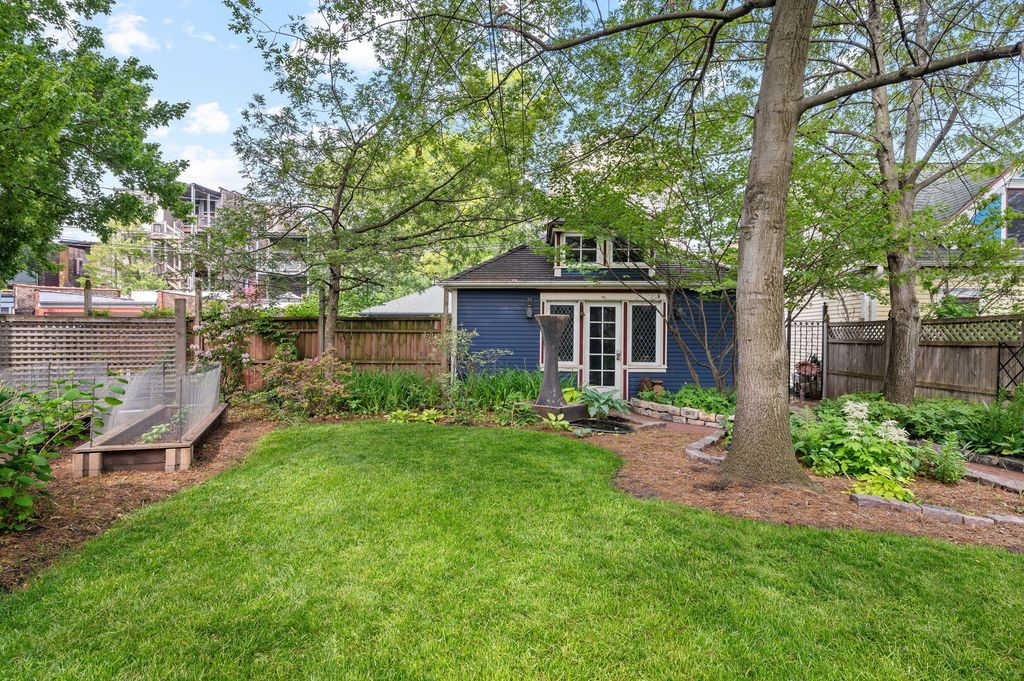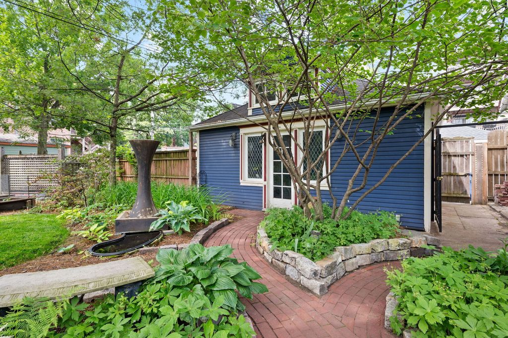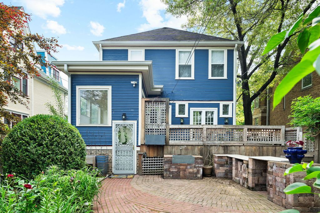 Step into history in Uptown/Sheridan Park's storied Dover Street Landmark District. Commissioned by A. G. Synnberg and built by Russell Powell in 1898, this original Queen Anne wood-frame residence sits on an extraordinary 50x195 lot-offering space, privacy and tranquility rarely found in the city. Thoughtful updates blend seamlessly with preserved architectural details, from the dramatic front staircase and pocket doors to intricate mouldings and original stained-glass windows. The gracious main level features an inviting foyer, formal living and dining rooms, and kitchen outfitted with premium JennAir appliances-including panel-front refrigerator and dishwasher-plus a Viking built-in oven, granite countertops, and custom cabinetry. French doors off the dining room open to a large deck overlooking the professionally landscaped backyard, where multiple entertaining areas-deck, patio, and gardens-create a private oasis. Upstairs are three bedrooms and two updated baths. The serene primary suite features a walk-in closet and an en suite bath complete with dual vanities, walk-in shower, and lots of cabinetry and storage space. The finished attic offers flexible space for a bedroom, studio, office, or playroom. The fully finished basement is the perfect place to entertain or hang out, which includes a rec room with adjacent bar area, bedroom with egress windows, full bath, laundry room, wine cellar, and additional storage. Mechanical updates include Carrier HVAC and roof (2021) and Renewal by Andersen basement windows (approx. 2020). A detached two-car garage and three additional parking pads (with rental potential) complete this remarkable property. Everything Uptown has to offer is right outside the door. The location cannot be beat. Walking distance to some of the best music and entertainment like the Aragon Ballroom, Riviera Theatre, and the famed Green Mill Tavern for jazz enthusiasts. Excellent dining options along Broadway, Clark and Wilson Street corridors, and everything Andersonville has to offer just around the corner. The lakefront and Lake Shore Drive are less than a 5 minute drive away. Public transit is a breeze here with many bus options on Clark, Lawrence, and Broadway, or take the CTA Red Line at the newly renovated Lawrence Avenue station. Mariano's grocery store is a few blocks away, across from the Lawrence Avenue Metra Station, which is a quick ride downtown!