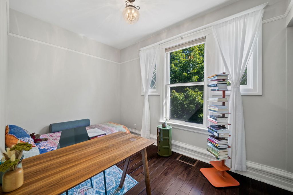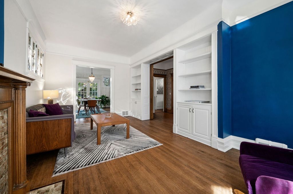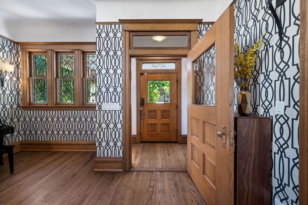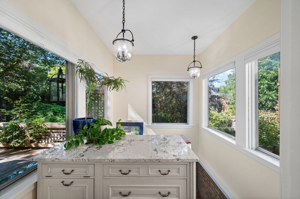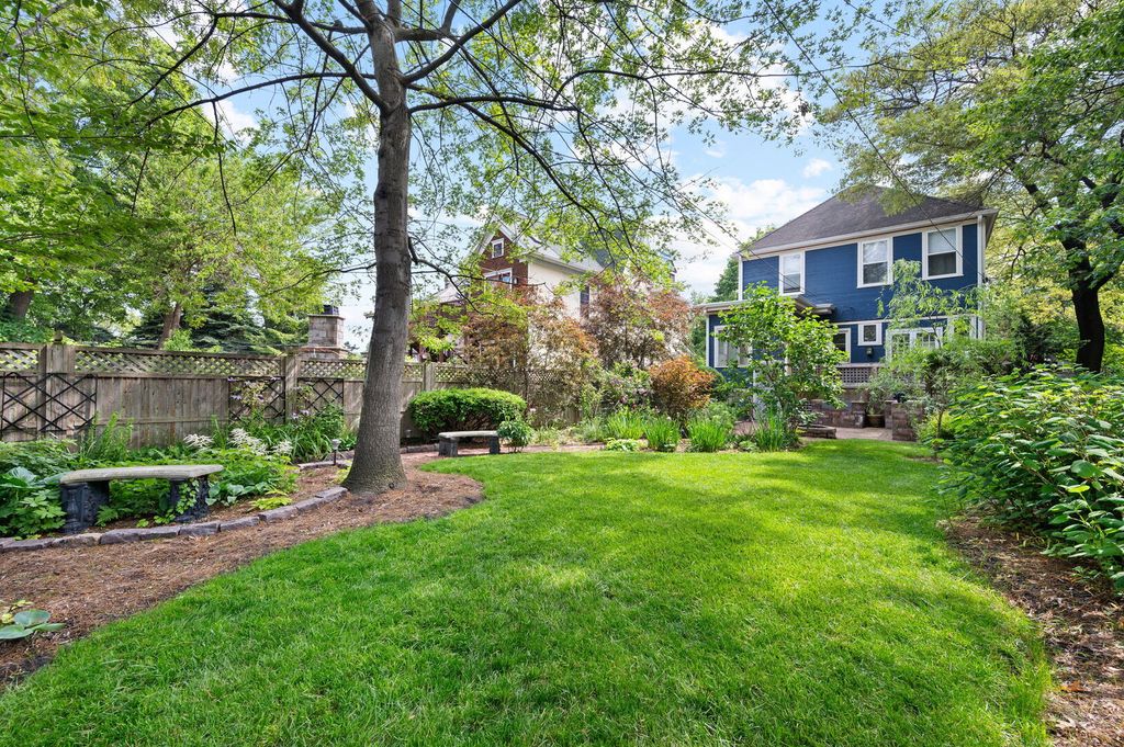 Step into history in Uptown/Sheridan Park's storied Dover Street Landmark District. Commissioned by A. G. Synnberg and built by Russell Powell in 1898, this original Queen Anne wood-frame residence sits on an extraordinary 50x195 lot-offering space, privacy and tranquility rarely found in the city. Thoughtful updates blend seamlessly with preserved architectural details, from the dramatic front staircase and pocket doors to intricate mouldings and original stained-glass windows. The gracious main level features an inviting foyer, formal living and dining rooms, and kitchen outfitted with premium JennAir appliances-including panel-front refrigerator and dishwasher-plus a Viking built-in oven, granite countertops, and custom cabinetry. French doors off the dining room open to a large deck overlooking the professionally landscaped backyard, where multiple entertaining areas-deck, patio, and gardens-create a private oasis. Upstairs are three bedrooms and two updated baths. The serene primary suite features a walk-in closet and an en suite bath complete with dual vanities, walk-in shower, and lots of cabinetry and storage space. The finished attic offers flexible space for a bedroom, studio, office, or playroom. The fully finished basement is the perfect place to entertain or hang out, which includes a rec room with adjacent bar area, bedroom with egress windows, full bath, laundry room, wine cellar, and additional storage. Mechanical updates include Carrier HVAC and roof (2021) and Renewal by Andersen basement windows (approx. 2020). A detached two-car garage and three additional parking pads (with rental potential) complete this remarkable property. Everything Uptown has to offer is right outside the door. The location cannot be beat. Walking distance to some of the best music and entertainment like the Aragon Ballroom, Riviera Theatre, and the famed Green Mill Tavern for jazz enthusiasts. Excellent dining options along Broadway, Clark and Wilson Street corridors, and everything Andersonville has to offer just around the corner. The lakefront and Lake Shore Drive are less than a 5 minute drive away. Public transit is a breeze here with many bus options on Clark, Lawrence, and Broadway, or take the CTA Red Line at the newly renovated Lawrence Avenue station. Mariano's grocery store is a few blocks away, across from the Lawrence Avenue Metra Station, which is a quick ride downtown!