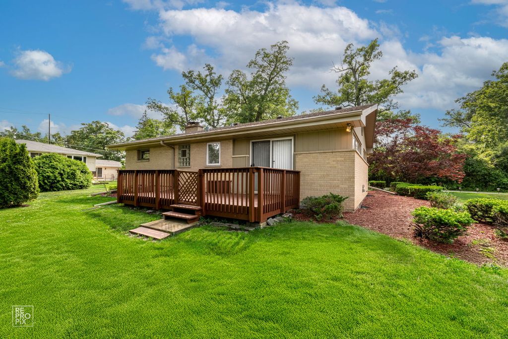 WELCOME TO THIS BEAUTFUL CUSTOM BRICK RANCH RETREAT IN DESIRABLE ADDISON! EXPANSIVE RANCH NESTLED ON A HUGE LOT 95X180 ON A DEAD END STREET! HOME FEATURES OPEN FLOOR PLAN, FIVE BEDROOMS, TWO FULL BATHROOMS, HARDWOOD FLOORS, TWO FIREPLACES & SO MUCH MORE! GOURMET KITCHEN WITH CUSTOM CABINTRY, SS APPLIANCES CONVECTION WALL OVEN, KITCHEN AID RANGE TOP, LARGE ISLAND FOR ALL YOUR ENTERTAINING, OPEN CONCEPT LIVING AND DINING ROOM WITH HARDWOOD FLOORS & FIREPLACE, LARGE PRIMARY BEDROOM WITH ACCESS TO DECK AND FULL UPDATED BATHEROOM, TWO ADDITIONAL GENEROUS SIZE BEDROOMS ON 1ST FLOOR, HUGE FULL FINISHED BASEMENT PROVIDES ADDITIONAL LIVING SPACE TWO ADDITIONAL LARGE BEDROOMS & FIREPLACE, LAUNDRY ROOM & LOTS OF STORAGE, PROFESSIONAL LANDSCAPE YARD DECK AND PATIO FOR ALL YOUR SUMMER ENTERTAINING, RECENT UPDATES: NEW ROOF 2020, SUMP PUMP 2022, NEW SS APPLIANCES, NEW WASHER AND DRYER, NEWER DRIVEWAY 2019 REFINSHED HARDWOOD FLOORS 2019, FRESH PAINT, PRIMARY BATH UPDATED 2017, GARAGE DOOR OPENER 2024, LOCATED CLOSE TO TRAIN, HWYS, SHOPPING, O'HARE, RESTAURANTS, OAK MEADOWS GOLF COURSE & WOOD DALE GROVE FOREST PERSERVE. Motivated seller bring all reasonable offers