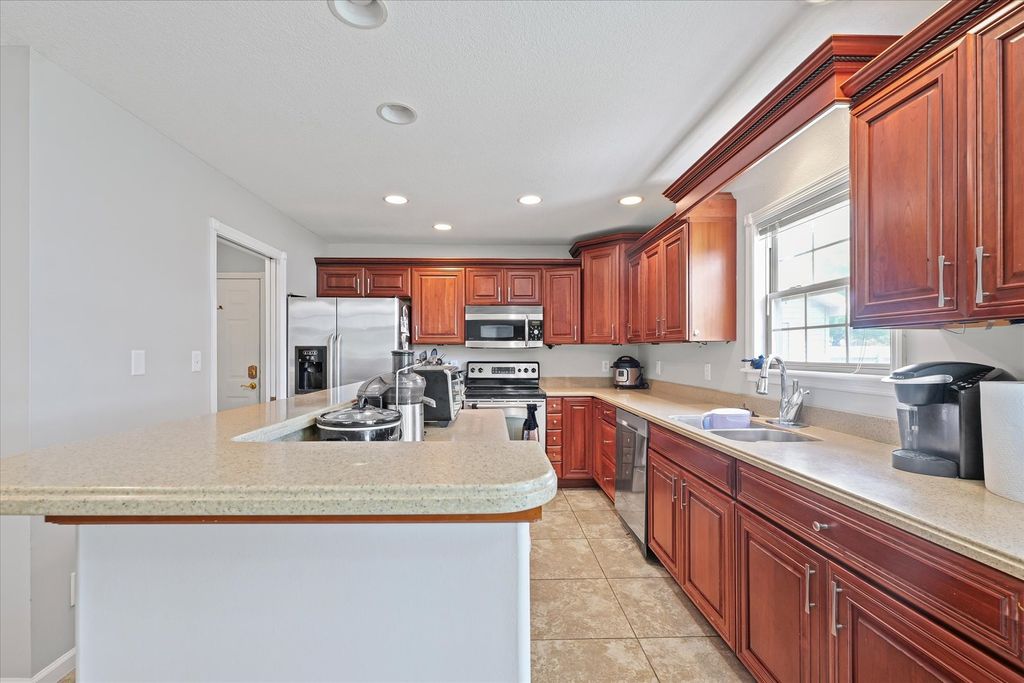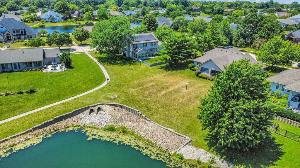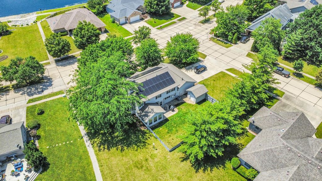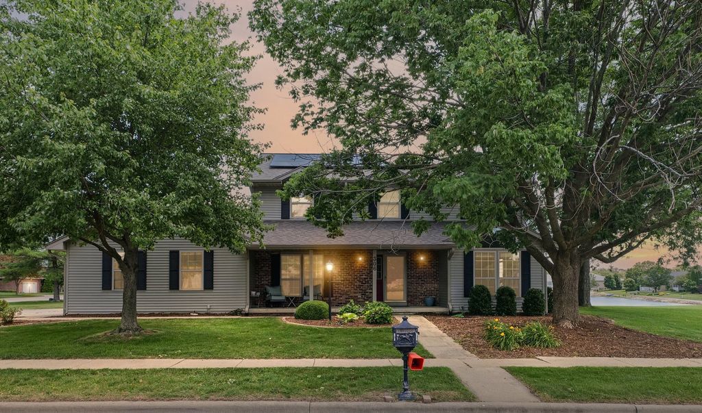 Home sweet home! Step inside this spacious and bright property and be WOWED by the open floor plan and gorgeous water views. The main floor offers multiple living spaces including a living room, family room, and sunroom. Upstairs you'll find 4 bedrooms, including the primary suite with a spa-like bathroom and walk-in closet which is your own private retreat. Outdoor living at it best with a nice patio overlooking the pond and fenced-in yard. This property sits on a PRIME corner lot which is an added perk with extra privacy and curb appeal. Updates include: Roof (2022), HVAC (2022), Paint (2025), and Appliances (2020-2024). Finally, the netzero solar panels on the home are PAID OFF and provide all the electric energy that the home consumes. That means little to no electric bills for nearly the next 25 years. Overall, this home has been well-maintained over the years and with just a few of your own touches, you can make this place your own!