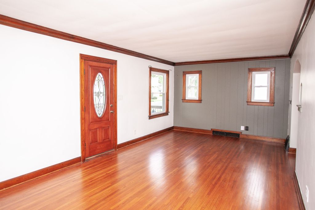Take another look at this home that offers so much for the money! A place to call home that's affordable compared to renting! Charming Cape Cod Style home in Founders Grove. Location is close to Lakeside Country Club, Holiday Pool and Oakland Elementary School. 2 Bedroom, 1 bath, with one bedroom on main floor and one on the upper level that is 23x9. Original White Oak hardwood flooring just refinished by seller in both bedrooms, hallway, dining and family rooms. The preserved wood trim and interior doors really compliment the charm throughout this home. The large family room 12x 23, great for entertaining your guests or just relaxing! The kitchen is complete with appliances and the lower level is unfinished with lots of storage. The front covered porch is a great place to unwind and watch the world go by. Don't miss this one as there is a large 2- car garage with the back section finished (15x21) and heated for a shop or recreation area, partial fenced yard, freshly painted and ready for you to call home!