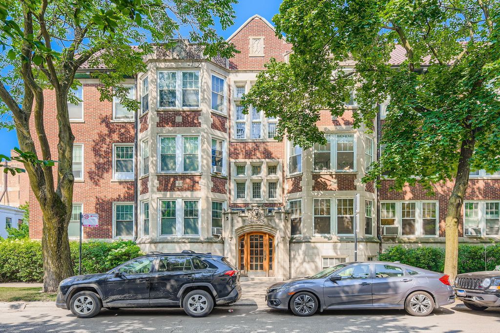 UNIT HAS BEEN RENTED THROUGH APRIL 2027. Light filled and full of character, this 3 bedroom 1600 sqft corner condo offers the perfect blend of timeless elegance and modern convenience. A welcoming barrel vaulted foyer opens to a sun drenched living and dining room with views of a picturesque, tree-lined street and perfect for entertaining! The Chef's kitchen features high end stainless steel appliances, granite countertops, center island and custom cabinetry with abundant storage. The split floor plan offers two spacious bedrooms on one side and a private third bedroom, ideal for guests, a home office, etc. The spa like bathrooms feature natural stone and designer fixtures. Additional features include hardwood floors throughout, new windows with tinted privacy glass, a modern electric fireplace, crown molding and custom window coverings. Located in Nettelhorst School District, the lake, Lincoln Park, shops, grocers, restaurants and transportation are all right outside your front door. Many parking options are available nearby, including permit street parking. Check SpotHero for garage options.
