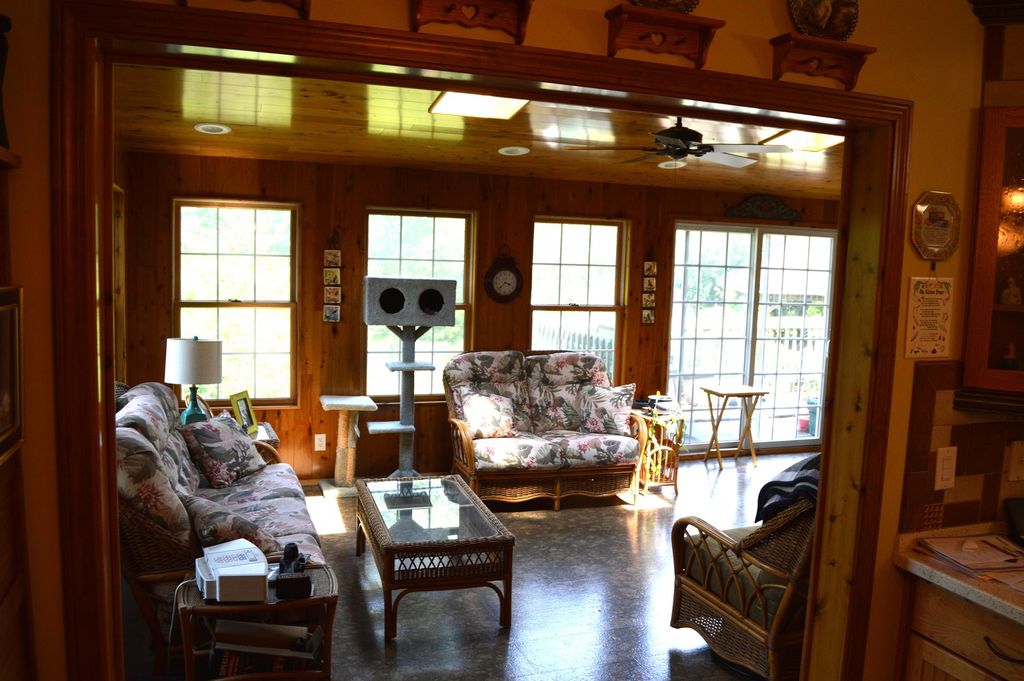 Set an appointment to view this huge 2 story home on 1.3 acres. 5 bedrooms and 4.5 bathrooms as well as 2 first floor great rooms and a living room. Owner's suite will impress you with all it offers. Need space for related living? The basement is finished with a bedroom and full bath, kitchen, living room and laundry room. A second entrance from garage also helps. You have an attached 2 car garage, and an extra 2.5 car garage for all of your stuff. The backyard has a wide variety of trees and plenty of trees in the front yard to make this a very private property. Deck surface boards will be replaced as needed with acceptable offer. You will find a gazebo in back too. A quiet area and just a golf cart ride to Elks Golf Course. Contrary to what Zillow keeps reporting on this property; it is not a 2 unit or rental apartment building.