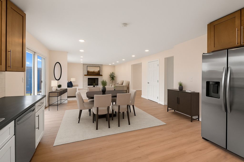 WOW-Fall in love with this stunning, fully remodeled home nestled in a peaceful cul-de-sac! From the moment you arrive, you'll be captivated by its picture-perfect curb appeal, featuring a new roof and siding (2021) and beautifully maintained landscaping. Step inside to a bright, welcoming space anchored by an inviting fireplace-perfect for cozy evenings and relaxed living. This thoughtfully updated home offers a formal living room and separate dining room, ideal for both entertaining and everyday comfort. The gorgeous new kitchen features brand-new appliances (2025), including a refrigerator, dishwasher, gas cooktop, microwave, and washer and dryer-everything you need for modern living! Enjoy luxury vinyl flooring throughout the entire home, and tastefully renovated bathrooms that add a fresh, contemporary feel. Outside, the private patio provides a perfect space for summer barbecues, morning coffee, or evening relaxation. The three-car garage offers abundant space for parking and storage, and the water heater (2016) ensures long-term comfort. Located just minutes from highways, top-rated schools, parks, and shopping-this home combines style, convenience, and quality all in one. Don't miss your opportunity-schedule a private showing today and prepare to be impressed!