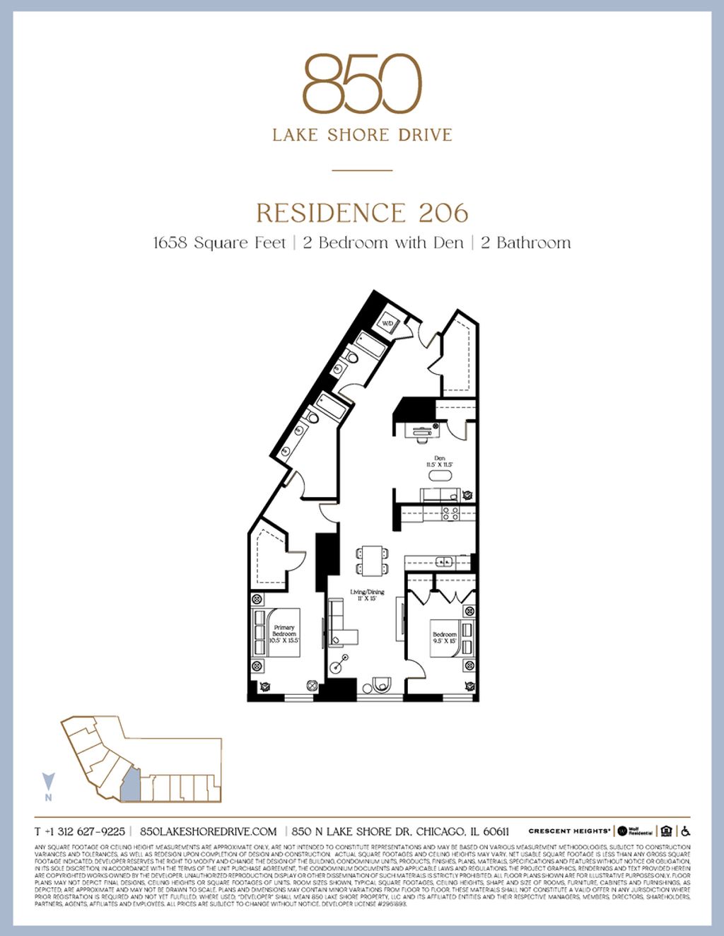 One, two, and three bedroom units available ranging from 1000-3700+ square feet. 206 is a 1658 sq ft two-bedroom with multi-purpose den, 9' ceilings, loads of closets, galley kitchen with all new SS Bosch kitchen appliances and new, in-unit Whirlpool washer and dryer. This beautifully renovated historical building, nestled along Chicago's picturesque lakefront, seamlessly combines timeless elegance with contemporary luxury. Step into the magnificent lobby, and you'll instantly be transported to a modern take on a classic, surrounded by exquisite architectural details that showcase the craftsmanship of this iconic structure. From intricately carved moldings to soaring ceilings adorned with stunning chandeliers, every inch of this building exudes a sense of grandeur. 206 where old-world charm effortlessly merges with modern design, creating a harmonious balance between style and functionality. But it's not just the interiors that set this building apart. It also offers a wide range of amenities designed to enhance your lifestyle. Take a dip in the heated indoor pool, work up a sweat in the state-of-the-art fitness center, or host unforgettable gatherings in the expansive 3,500-square-foot Grand Lounge, complete with soaring 20-foot ceilings and breathtaking views of the lake. The rooftop deck greets residents with mesmerizing vistas of Lake Michigan. Picture yourself savoring your morning coffee as the sun rises over the water or hosting memorable events against the backdrop of the city's skyline and the serene lakefront. Beyond the building's beauty, its location is unparalleled. Situated between Michigan Avenue and Lake Shore Drive, this residence offers access to the vibrant cultural scene, world-class dining options, and the finest shopping experiences that the city has to offer. Whether you're leisurely strolling along the scenic lakefront trail, exploring nearby museums, or enjoying a day at the beach, everything you desire is at your front door. **Photos and renderings are of model residences, virtually staged amenities and lobby. These are representative of inventory available or optional finish upgrades and may not exactly represent this listing unit. The design choices represented in the renderings are proposed options reflecting general design inspiration and considerations. All design intent is subject to change. A variety of floorplans and finish packages are available.**