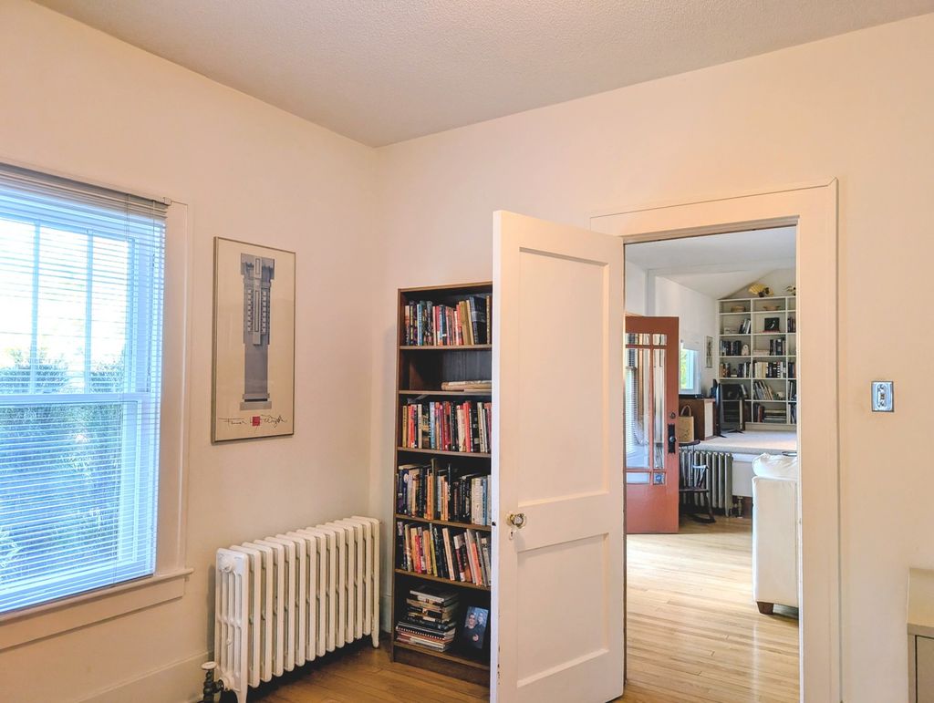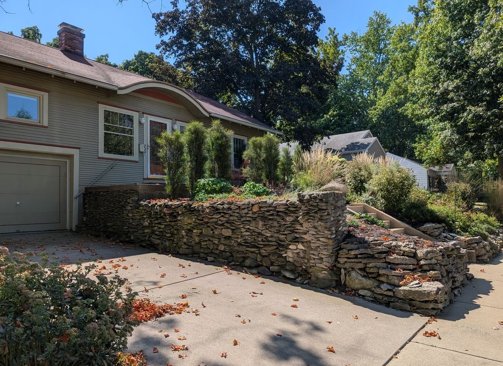 This charming home is packed with character and available for the first time in 40 years!! Professionally landscaped by Brown Woods, lush plantings provide year round interest and a plant-pollinator support system. Beautiful stone-terraced gardens grace either side of steps lead up to this 1928 Bungalow. The 1200 SF one story home includes 2 bedrooms, 1 full bath, beautiful hardwoods (LR and bedrooms), original built-ins, 1 car attached garage and a partial unfinished basement. A 1997 architectural renovation updated the existing clean lines while keeping many original features intact; the addition of the fireplace surround, a wall of built-in shelving in the walk-up family room and to-the-studs kitchen remodel. Stairs to the family room are also located off the kitchen. The fully applianced galley kitchen is thoughtfully designed for efficient use, a peninsula provides useful counter space and opens to the dining room for interaction and ease of conversation. The dining room's southern windows provide excellent light and lovely backyard views while dining or lounging on the window seat. Extra storage is found in original built-ins and inside the entire length of the window seat. The bathroom was updated 2014 retaining the original hexagon tile floor and the addition of space saving wall cabinets; the large walk-in shower was a more recent addition. Both bedrooms are of similar size with era appropriate walk-in closets which include built-in dressers. The boiler was installed 2017 providing hot water radiator heat to keep the home toasty during our colder months. The home is kept comfortably cool in the summer months with a family room window AC. The water heater was new 2022. Roof 2005. An unfinished basement is the laundry location with extra space for flexible use and plenty of storage area. In July 2025, the outgoing cast iron sewer system was replaced; a portion of the cast iron for the kitchen sink and laundry drain also replaced. A sewer scope from the house to the city main showed no issues and in great shape. The home also has an irrigation system. An inspection by Healthy Homes is available on request. An excellent home with an Old Champaign neighborhood vibe, convenient location for community enjoyment, public transportation and UIUC. Come visit, you'll be glad you did!