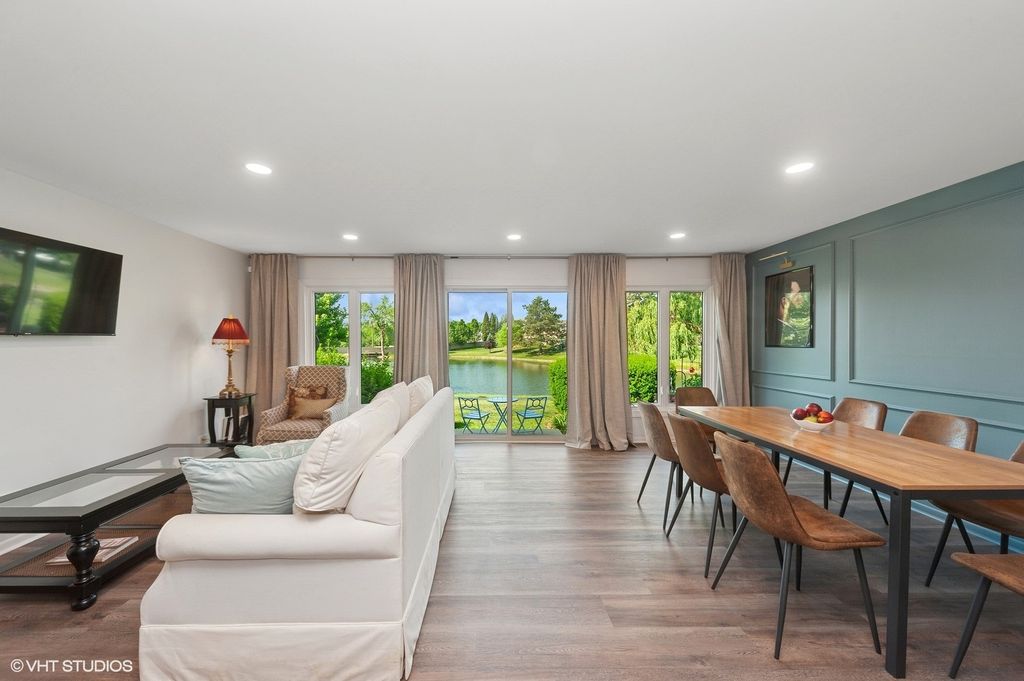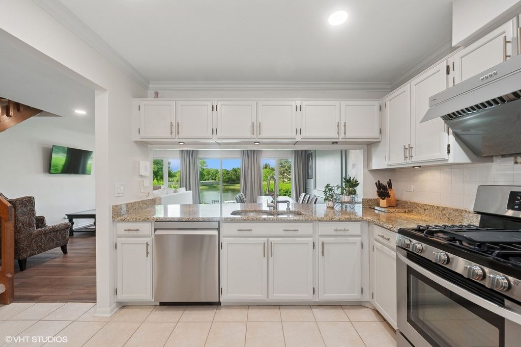 Seldom available scenic waterfront(just look at the photos) Park East townhouse, along with the highly rated Stevenson High School district. Meticulously maintained 4BR/3.5 baths of over 2,000 sq. ft. offers rare water views and warm, modern finishes including updated recessed lights and new flooring throughout the home for a seemless finish. Refreshed kitchen with updated cabinet color and hardware, granite countertops, high-end appliances and a new dishwasher. Living and dining areas enjoy stunning water views and open directly to the patio, newly enhanced with planted greenery and flowers perfect for relaxing or entertaining. Upstairs, all three bedrooms are generously sized, including a primary suite with an ensuite bath and custom California Closets for walk-in. Second bedroom and upstairs hallway all have custom California Closets, Third bedroom with walk-in closet. Entire interior freshly painted(2023-25). New roof just installed in July, 2025 with no additional fees! The fully finished basement features a large recreation room with built-in cabinets, bedroom and full bath, plus a laundry room with washer and dryer. Ideal for use as an in-law or au pair suite. Attached 1 car garage with extended 2-car driveway. Enjoy peaceful lake views from the primary bedroom, living room, dining area, and kitchen with no direct views of neighbors' backyards; instead your view is of the lake, walking paths, mature trees and abundant wildlife. A rare opportunity for move-in ready low-maintenance townhouse that offers space, serenity, and timeless upgrades in a highly desirable location.