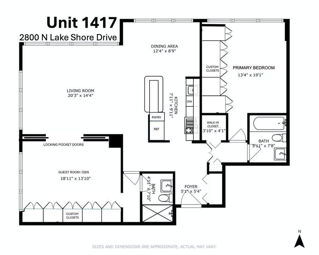 Check out this beautiful Northwest corner unit in the highly sought-after 2800 N Lake Shore Drive. This building is located in a remarkable park-setting on the north edge of Lincoln Park and along Lake Michigan. You are steps away from 25 miles of lakeshore running, walking, and biking trails Diversey and Belmont Harbors, public transportation, neighborhood restaurants, golfing, the zoo, and so much more. This 2 bedroom / 2 bath condo is rich with high-end finishes and decor to match this building's many amenities and one-of-a-kind views from it's 43rd story rooftop viewing deck and event room. These are some of the best views in the city, overlooking the city skyline, Navy Pier and the lake's harbors and beaches. This unit was completely renovated in 2014 with warm, timeless and contemporary style that still looks brand new today. High-end renovations include handcrafted, solid wood cabinetry with espresso finishes in the modern kitchen and matching floating vanities in both bathrooms. This unit boasts high-end Jenn-Air appliances in the kitchen, modern tile and bathroom fixtures, and elegant accent lighting and light fixtures throughout. The flooring is a quiet, rich espresso-stained cork with a warm, elegant glow. Every closet and storage space has been upgraded with floor-to-ceiling custom handcrafted doors that open up to reveal a tremendous amount of storage space, hidden drawers, shelves, and hanging space for maximum storage and style. The primary bedroom has been transformed into a "flex room" with 7.5' tall, custom, solid wood, lockable double-pocket doors. This allows this bedroom / en-suite to serve primarily as a den arc room that opens into the living room. These sense of space and expanded views is dramatic. However when guests arrive, the doors can be closed and locked creating a private suite with with its own private entrance and bathroom. Additional privacy doors have been added to the other hall, making the 2nd bedroom a matching en-suite as well. The entire unit has been upgraded with double pane glass windows throughout, making it exceptionally quiet and comfortable. New contemporary roller shades make for a crisp, clean complement to the massive windows and stunning views. This unit is being offered ad unfurnished at $524,900, and also available as a furnished unit (as staged) for an additional $20,000.