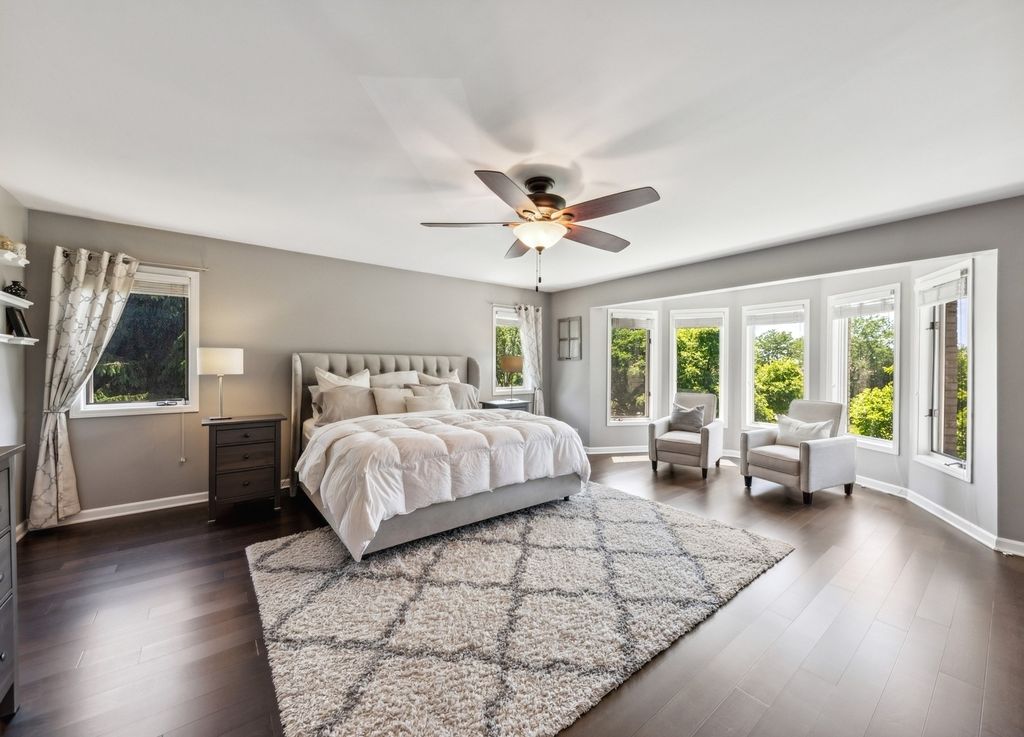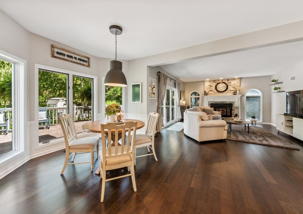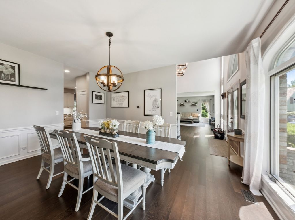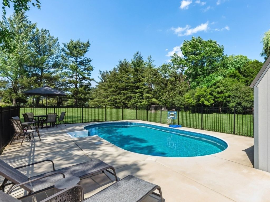 Picturesque River Road winds past beautiful homes, mature landscaping, and equestrian pastures, leading you to the sought-after enclave of Daybreak Farms. Set on a hill, near the end of a quiet cul-de-sac, sits 1551 Daybreak, offering an acre of land and a heated in-ground pool. This home is truly move-in ready, with EVERY room recently updated to reflect a fresh, farmhouse aesthetic. The fluted glass double entry doors open to a welcoming curved staircase with newly stained treads and a beautiful new chandelier. The welcoming foyer features new paint, gleaming floors, bay windows, and wainscoting - all setting the tone for the entire home. The heart of the home - the kitchen - has been completely remodeled with the light, and bright style that today's buyers love. You'll find white cabinetry, quartz countertops, stainless steel appliances, a pantry, and a sunny breakfast nook - all designed for both function and style. The newly opened floor plan (ask for a copy of the 4 page feature sheet of ALL the updates the seller completed!) flows seamlessly into the family room, anchored by a cozy fireplace and large sliding doors that lead to a private deck - perfect for entertaining. The first-floor laundry/mudroom area has also been thoughtfully redesigned with custom cubbies, storage, and a convenient shower - ideal for rinsing off after a swim or cleaning up your four-legged family members! Upstairs, the spacious primary suite includes a walk-in closet and fully renovated en-suite bath with a new double vanity, soaking tub, and a generous walk-in shower with dual shower heads. Three additional bedrooms - one currently styled as a home office - and two beautifully remodeled full bathrooms complete the second floor. The finished lower level offers even more flexible space with room for a home gym, recreation area, additional work-from-home setup, another bathroom, and a fun hidden playroom nook. The finished and insulated 3-car garage includes a Tesla charger and abundant storage space. Just in time for summer, enjoy the expansive, professionally landscaped yard, private deck, and heated pool - all designed for outdoor living at its best! Residents love strolling the winding neighborhood paths, passing private tennis courts and Independence Grove. The location offers unmatched convenience - minutes from I-94, Abbott/AbbVie, St. Joseph and Carmel High School, Adler Park, Hunt Club Park, Minear Lake, Libertyville's vibrant downtown, Melody Farm shopping and dining, the library, sports complexes, and the Metra. Available to close in time for the new school year, this is not to be missed!