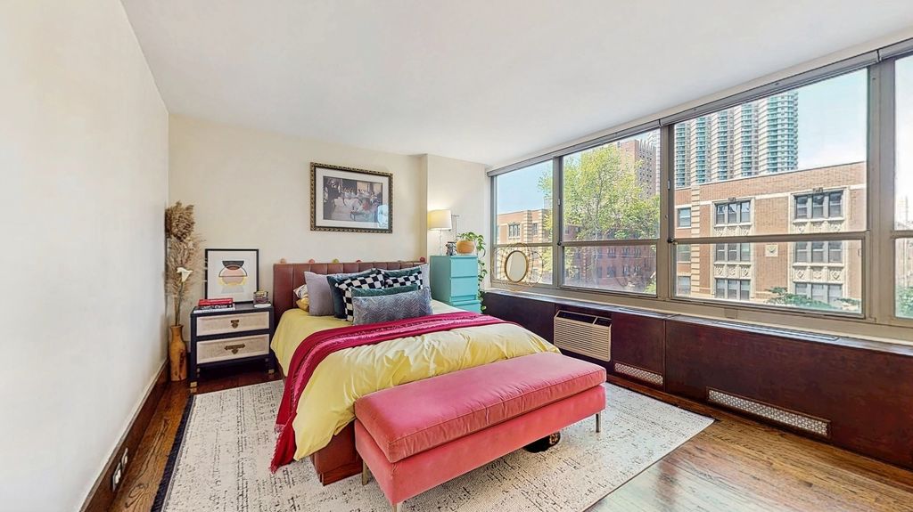 Welcome to 3550 N Lake Shore Drive an iconic, full-amenity building in one of Chicago's most desirable neighborhoods. This bright large 1-bedroom, 1-bath condo features a flexible open-concept layout with an L-shaped living and dining area, perfect for entertaining, a home office, or guest space. Oversized windows let in abundant natural light and offer calming views of leafy green trees and the surrounding cityscape. Enjoy a kitchen with stainless steel appliances, granite countertops, a functional island, and ample cabinet space. Hardwood flooring flows throughout the main living area and bedroom. The spacious bedroom comfortably fits a king-size bed and offers excellent closet storage. The vintage-style bathroom includes a soaking tub and provides a great canvas for your personal touch. Building amenities include 24-hour door staff, updated hallways, two rooftop sundecks with breathtaking lake and skyline views, a fitness center, library, dry cleaners, commissary, bike storage, two laundry rooms, and on-site management and maintenance. Valet garage parking is also available. Just steps from Lake Michigan, the lakefront trail, Belmont Harbor, Wrigley Field, and an endless array of restaurants, cafes, and shops, this unbeatable location offers the perfect balance of city life and lakeside serenity. Commuting is easy with quick access to express buses, trains, and Lake Shore Drive. Owning real estate in East Lakeview means investing in one of Chicago's most vibrant and desirable neighborhoods, where classic charm meets modern convenience. If you are looking to enjoy the best of city living near the lake, this is a can't-miss opportunity.
