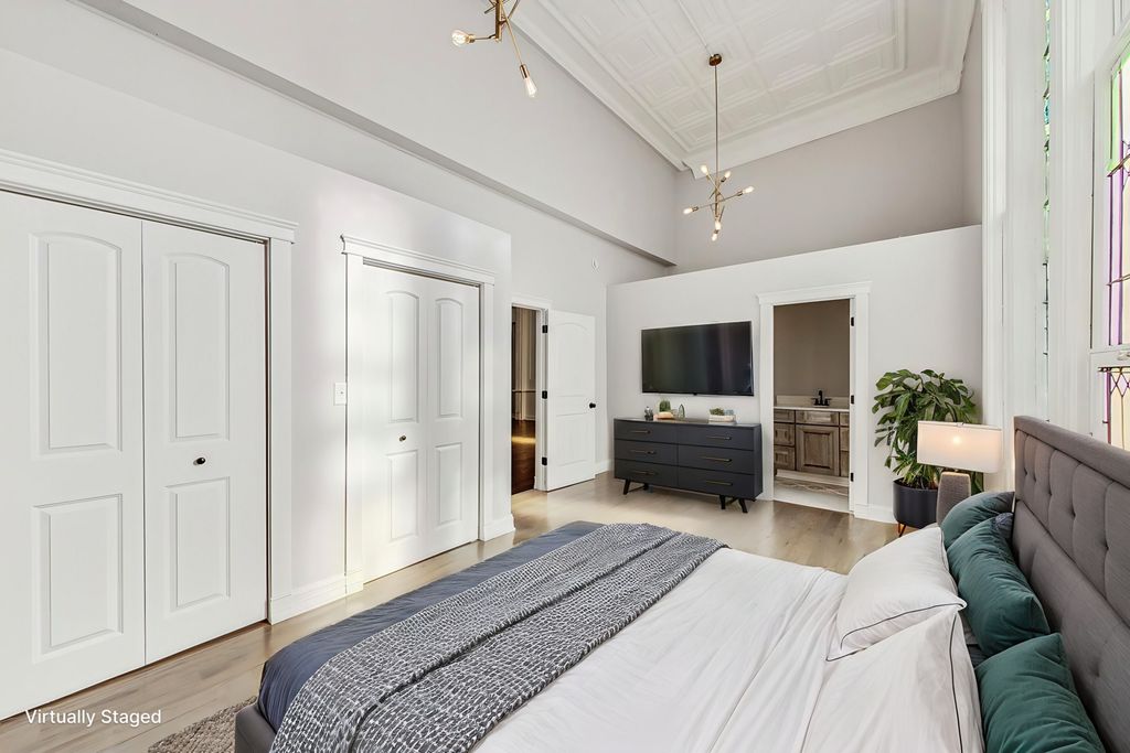 Welcome to 200 W Crawford Street, a truly unique property that masterfully combines the timeless beauty of a historic church with the modern luxury of a fully remodeled residence. Spanning over 5,000 square feet of finished living space, including a beautifully finished basement, this extraordinary home offers an abundance of room for both family living and entertainment. The space has been thoughtfully updated, preserving the church's original charm while incorporating the highest standards of modern comfort. As you step inside, you're greeted by a grand, open-concept living area that's flooded with natural light from the stunning original stained glass windows. The soaring ceilings and exquisite woodwork make a striking first impression, while a beautiful fireplace adds warmth and coziness to the main living space, creating the perfect spot for relaxation or intimate gatherings. The chef-inspired kitchen is a dream. Just beyond the kitchen, the expansive dining area flows seamlessly into the living room, ideal for hosting guests or enjoying family meals. The home offers five spacious bedrooms and four luxurious bathrooms, with thoughtful details throughout. The private attic suite, complete with its own bathroom, serves as a peaceful retreat with unique, elevated views of the surrounding area. The fully finished basement provides even more living space, offering endless possibilities for a home theater, game room, or private lounge. This stunning church conversion is truly a rare find-a harmonious balance of history and luxury that offers a living experience like no other. Don't miss your opportunity to see this exceptional residence-schedule a private tour today and experience firsthand the beauty and grandeur of this one-of-a-kind home.