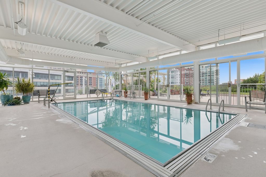 Ideal downtown Evanston location with fabulous views of the lake! 3 bedroom 2 bath condo with newly installed hardwood floors (except primary bedroom) and freshly painted throughout. Separate laundry room, east facing balcony, 1 car garage parking, door person, gym, sun deck and swimming pool complete the package. Can't beat the location 300 ft to the Metra train, 1 block to the Purple Line and blocks to Fountain Square, Farmer's Market, movie theater, and all the downtown restaurants, gyms and shopping.