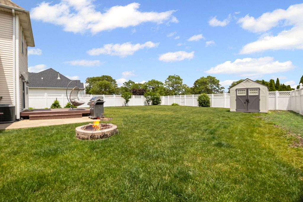 This one has it all! Great house, Great space, Great location!! This Southcreek beauty features 4 bedrooms, 2.5 baths, and a partially finished basement with rough-in! The large fenced yard backs up to a park and offers a shed, deck and concrete patio! The immaculate interior provides an abundance of space, whether you are cozied up to the Living Room Fireplace, or hosting friends in the separate Dining Room. The Eat-In kitchen has sliding doors to the back deck. Upstairs, you'll find 4 large bedrooms, including the master with ensuite and the 2nd floor laundry room for convenience! Don't wait! EASY TO SHOW!