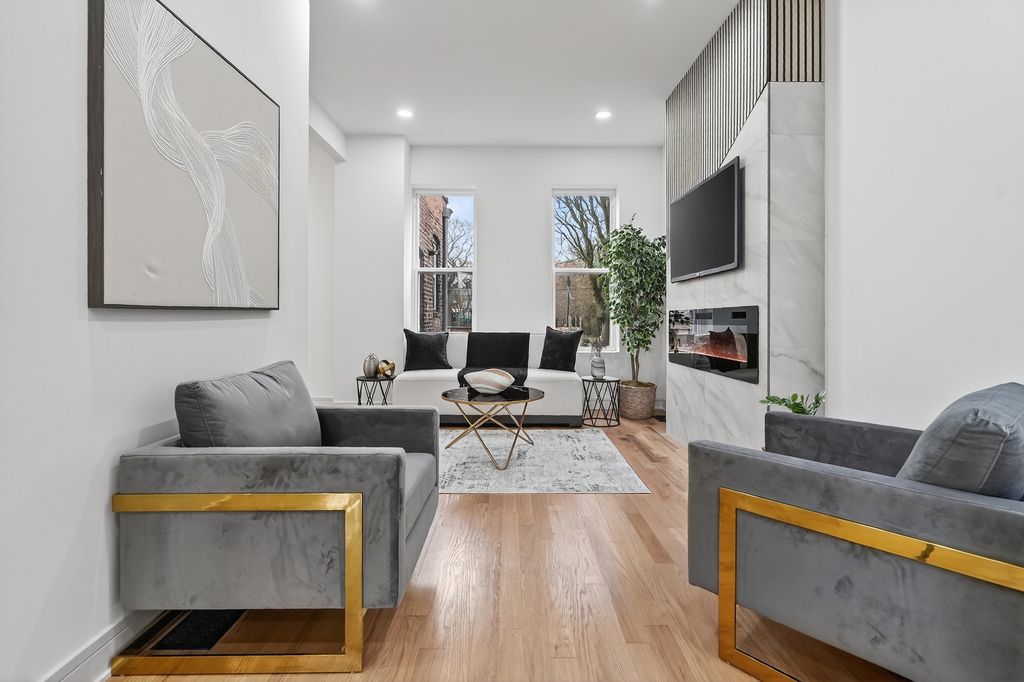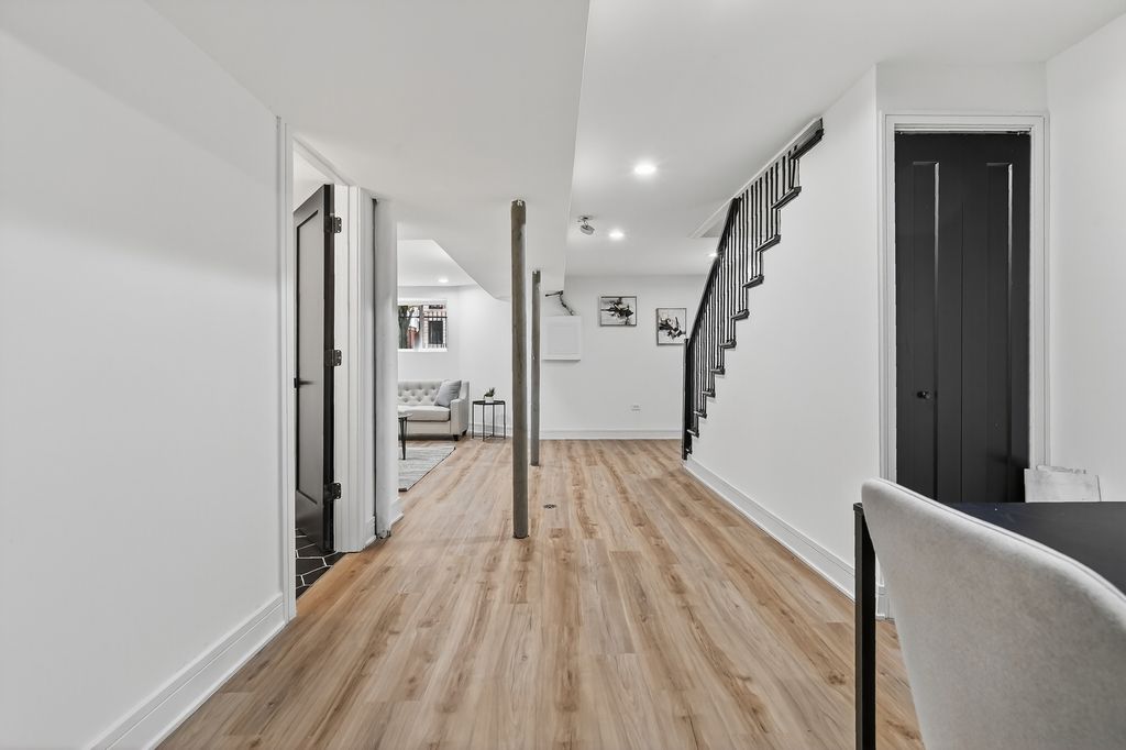 Stunningly renovated 4-bedroom, 3.5-bath, three-story brick home that beautifully blends classic Chicago architecture with modern luxury. Step inside to soaring ceilings, abundant natural light, and gleaming hardwood floors that flow throughout the home. The showstopping kitchen features a Scandinavian-inspired modern design with chef-level functionality. Sleek flat-panel cabinetry in warm natural wood pairs seamlessly with crisp white uppers, creating a bright and airy atmosphere. A premium stainless steel appliance package including a professional-grade range and oversized farmhouse sink anchors the space, while the marble-look backsplash, quartz countertops, and contemporary lighting add refined elegance. The open layout provides generous workspace and effortless flow, perfect for daily living or impressive entertaining. Retreat to the spa-inspired primary bathroom, thoughtfully designed with a freestanding soaking tub, custom walk-in shower, floor-to-ceiling marble-style tile, and sophisticated brushed-gold fixtures. Textured accent walls, mosaic flooring, and built-in niches elevate the space, offering a serene environment to unwind. Two additional bedrooms on the upper level share a beautifully updated full bath. A brand-new rear deck extends your living space outdoors ideal for relaxing or hosting gatherings. The large finished attic offers incredible versatility and can serve as a children's playroom, home office, or second family room. The fully finished basement adds even more living options, including a spacious family room, guest bedroom, full bath, laundry area, and ample storage perfect for in-laws, entertaining, or even a private getaway or man cave. Recent upgrades include all-new mechanicals, plumbing, and electrical, ensuring peace of mind and a truly move-in-ready experience. With its timeless style, thoughtful design, and prime location near parks, shopping, dining, and transit, this exceptional brick home is one you won't want to miss.