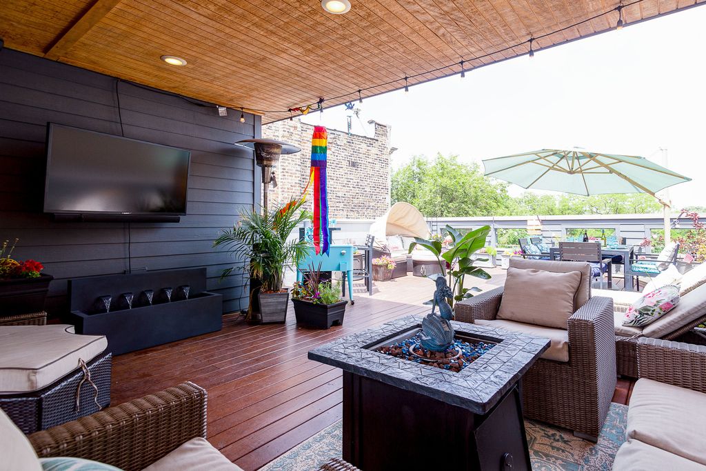 Overlooking iconic Humboldt Park, this custom-built, four-level home is where elegance meets everyday comfort. Set on an extra-wide, extra-deep lot, it's designed for both lively entertaining and quiet retreats with generous space for gatherings and intimate corners for slowing down. Step inside to soaring 10-foot ceilings, oak-stained hardwood floors, and beautifully crafted details-wainscoting, crown molding, and 8-foot doors throughout. A living room with French doors opens to stunning park views, anchored by a marble fireplace. The formal dining room and full wet bar make hosting seamless, while the chef's kitchen-with double cabinetry, quartz counters, two sinks, and a desk nook-flows into a spacious family room and backyard deck. Upstairs, the massive primary suite feels like a private retreat, complete with fireplace, French doors, and a spa-like bath featuring limestone radiant-heated floors, a soaking tub, and a steam shower wrapped in stone and marble. Two more large bedrooms, a stylish second bath, and a side-by-side laundry room round out this level. The lower level offers an expansive media room with heated radiant floors, marble fireplace, wet bar, and two additional bedrooms-plus a second laundry area and extra storage. At the top? A showstopping penthouse rooftop deck with wet bar and sweeping views of Humboldt Park's tree canopy-perfect for unforgettable summer nights and 4th of July fireworks. Other highlights: Sonos in-ceiling speakers, four fireplaces, custom closets, spa baths, dual HVAC with 3-zone control, and an oversized 2.5-car garage. Live across from the park's beach, the 606 trail, and tennis courts, and walk to Wicker Park, Logan Square, California Ave's shops and restaurant row. Truly a one-of-a-kind home in a location that has it all-a MUST SEE.