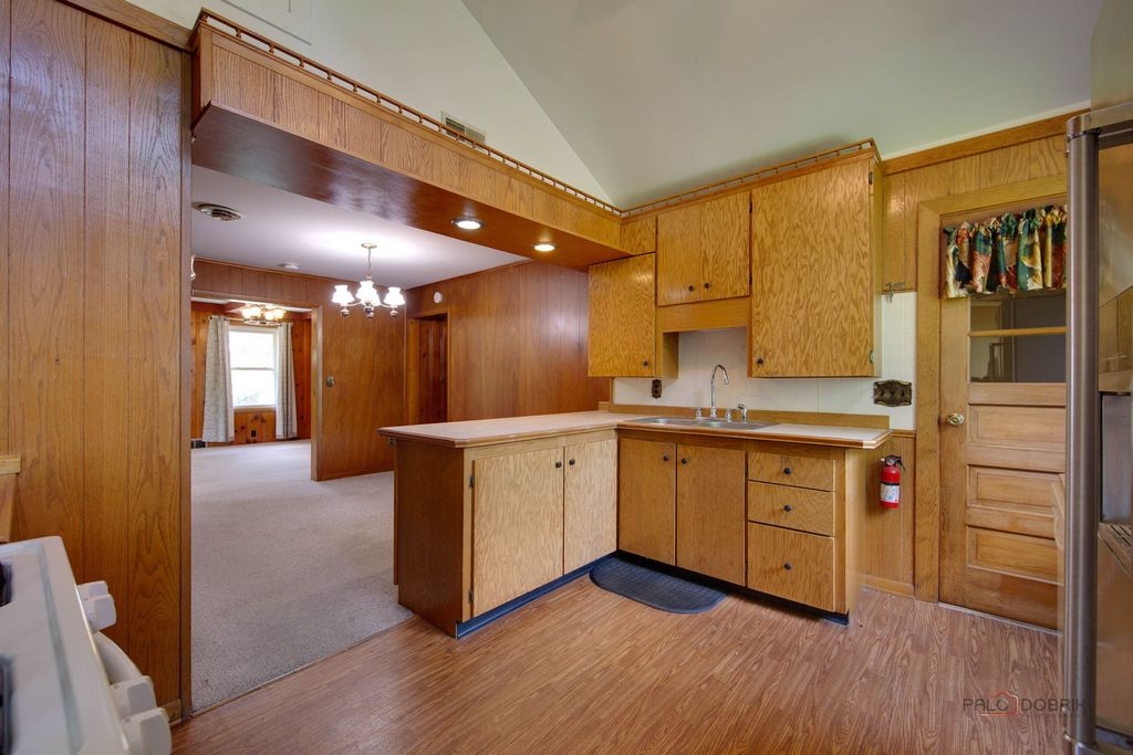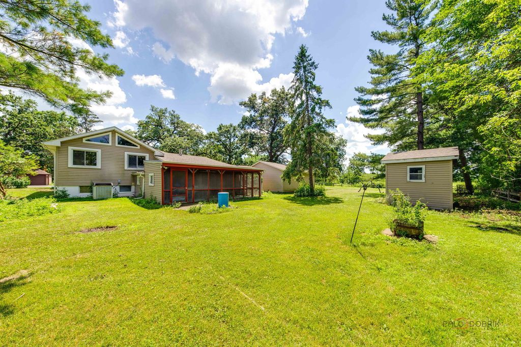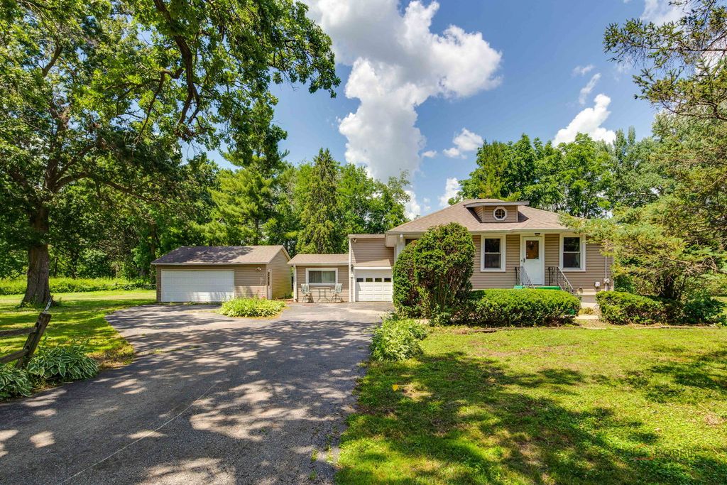 Unbeatable Location with Nature at Your Doorstep! Nestled against the scenic Rollins Savanna and the Millennium Trail, and just steps from the shores of Third Lake, this charming home offers an unbeatable setting for outdoor enthusiasts. Whether you're kayaking, hiking, or simply soaking in the serene surroundings, this location delivers peace and natural beauty in abundance. Inside, you'll find a solid home full of rustic charm and thoughtful touches. Rich, authentic knotty pine walls create a warm, inviting atmosphere throughout. The efficient kitchen features vaulted ceilings and a breakfast bar, opening to the dining room and flowing effortlessly into the living area. Bring your renovation ideas! You'll love the vintage character of the pocket doors and the cozy, lower-level family room-complete with a bar and pool table (both included!). Unwind in the screened porch or get creative in the attached 12x17 workshop. Additional highlights include: 24x23 detached garage for your boat, bikes, or gear. Attached garage, Roof and siding new in 2017, Furnace replaced in 2015. This is a fixer-upper, offered as-is; this owner never used the fireplace. Additional Opportunity: Two lots to build on, East and West of the home, are also available if you're looking for more space or future expansion.