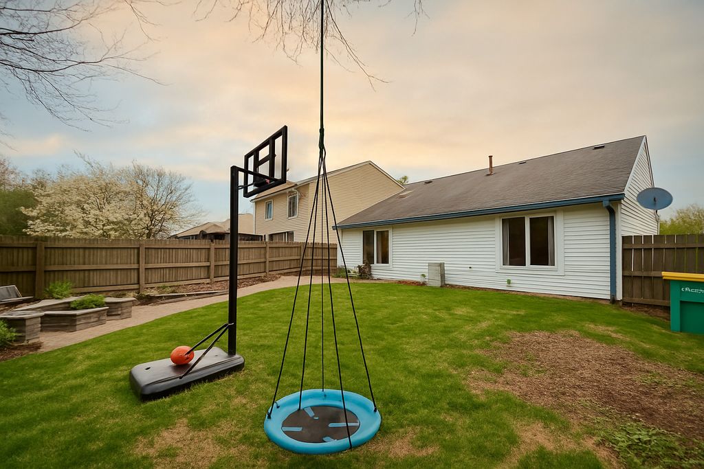 NEW ROOF installed on Oct 1 2025!!! Fantastic Value in School District 200! This well-priced home is a rare find in School District 200! It features a cozy living room, a dining area, and an open-concept kitchen with a modern glass tile backsplash. Freshly painted throughout, the home offers three bedrooms and a layout designed for comfort and functionality. Step outside to a fully fenced backyard, perfect for relaxing or entertaining, with a fire pit and a patio just off the dining area-easily accessed through sliding glass doors. An incredible opportunity at a price that's hard to beat-don't wait, this one won't last!!