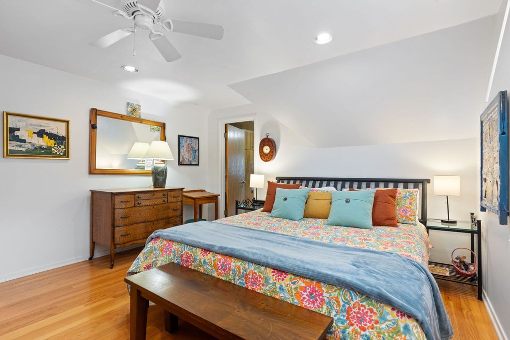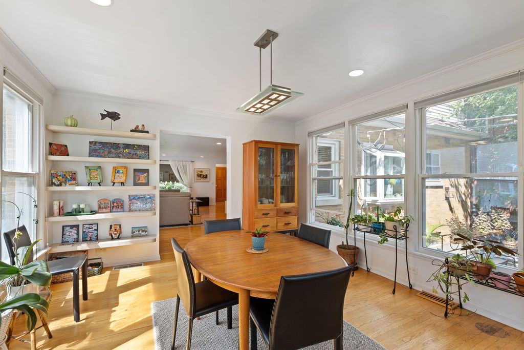 This Lincolnwood Towers charming two story home sits on a 50x148 lot located in the most sought after neighborhoods. Step into the spacious living room featuring a cozy woodburning fireplace, recessed lighting and an inviting atmosphere for both relaxing and entertaining. The eat-in kitchen with it's white cabinetry, wood floors and stainless steel appliances provides an inviting warmth and charm. Enter the second level where you will find the master bedroom suite boasting two walk-in closets and an en-suite bathroom creating a retreat like feel. Two bedrooms and a full bathroom complete this level. Hardwood floors are consistant throughout the first and second levels. The finished basement has a full bathroom, a versatile recreation room with built-ins and multiple storage rooms.The 1.5 car attached garage is conveniently located giving direct access into the home near the kitchen and basement.