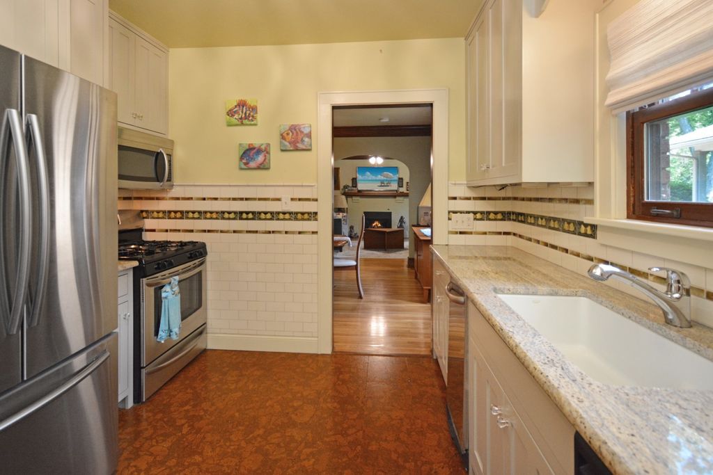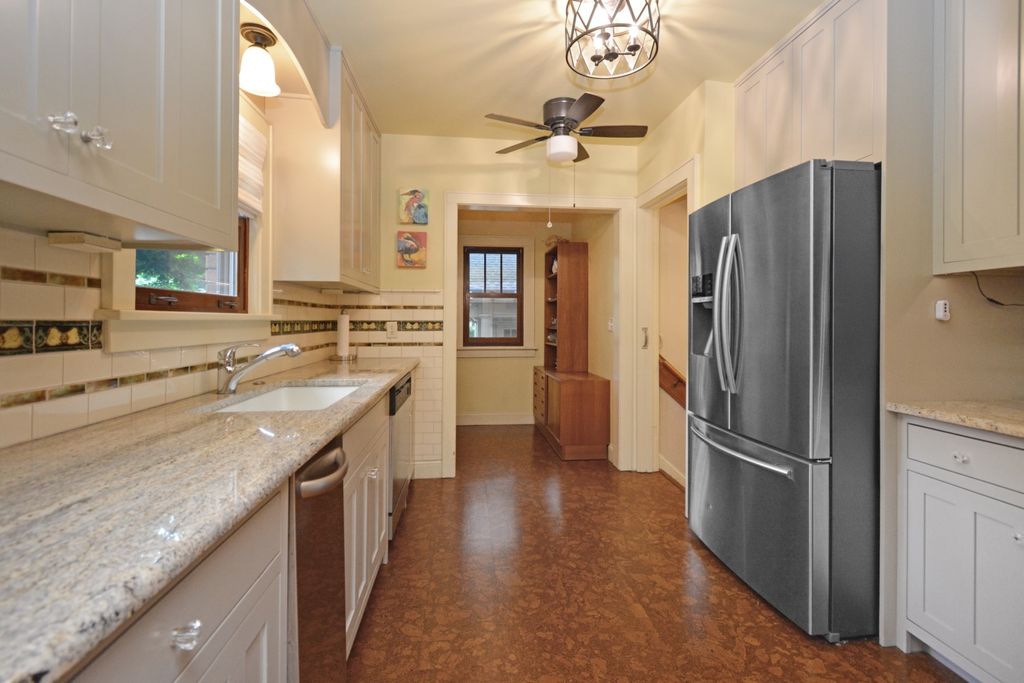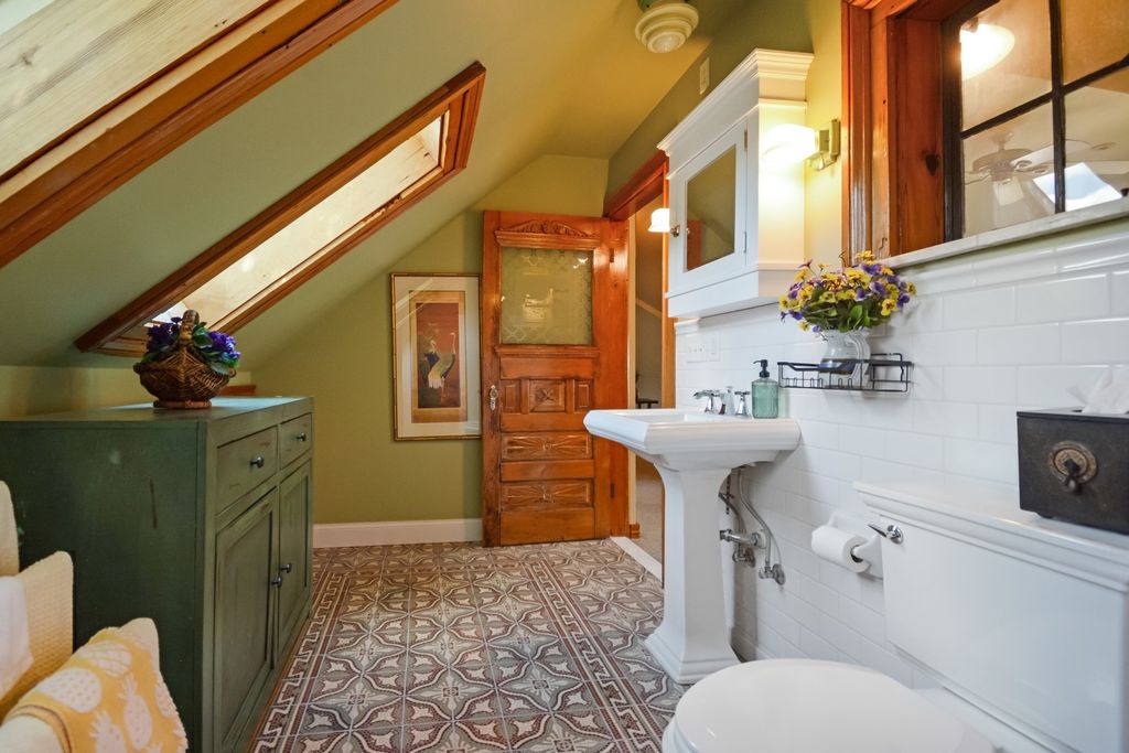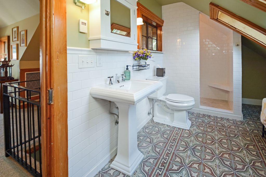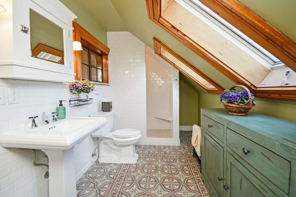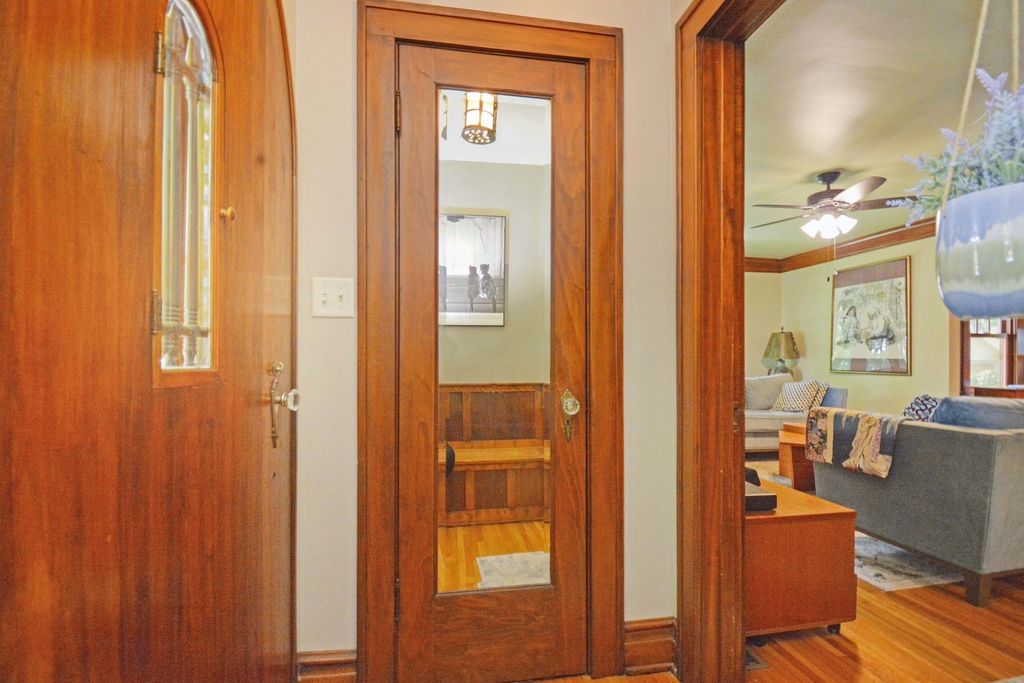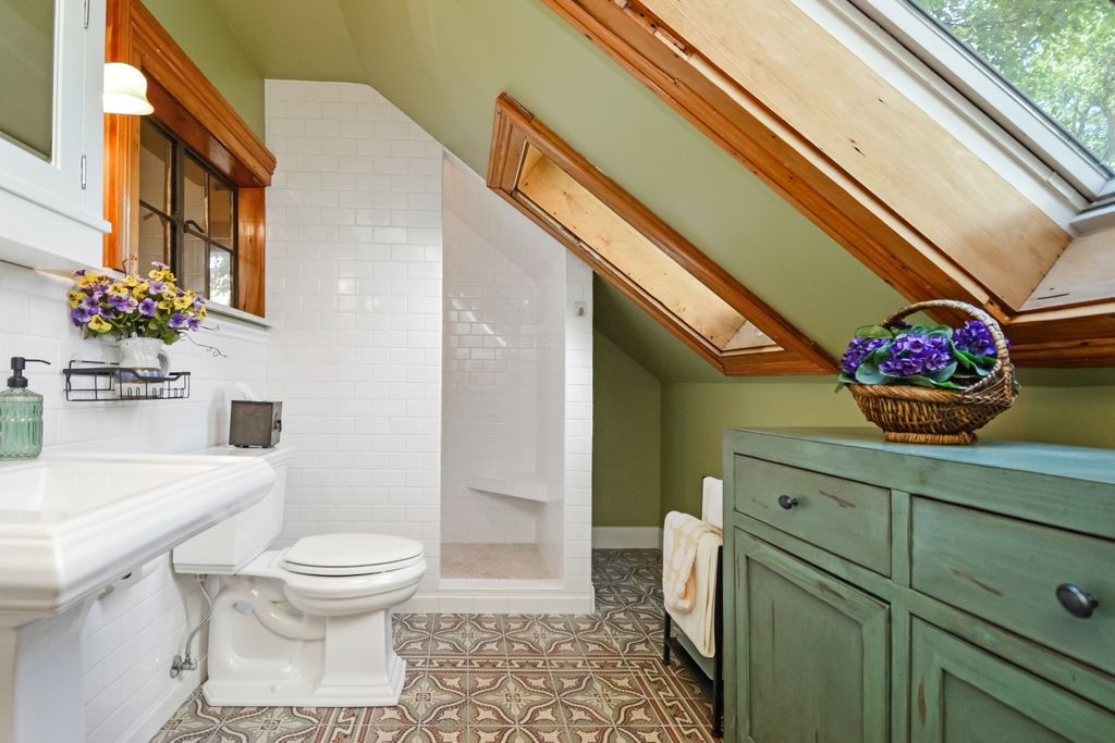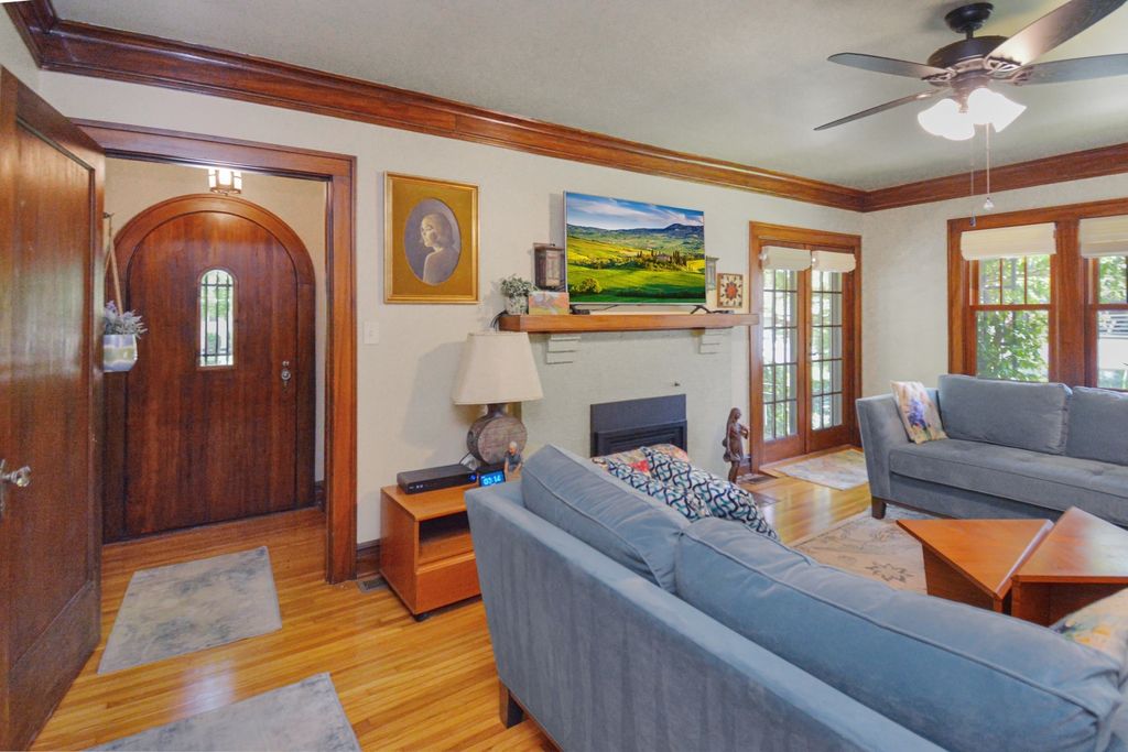 Located on one of the most picturesque streets in Founder's Grove, this 3 bedroom, 2 bath gem is quite possibly the most stunning all-brick bungalow in Bloomington-Normal! From the moment you step through the curve-topped front door, you'll be captivated by the home's timeless beauty: Original hardwood floors, natural wood trim, and elegant crown molding set the tone for a truly special living experience. This home has been meticulously maintained and thoughtfully updated with some of the finest upgrades imaginable. Two bedrooms and one full bath are located on the main level... however the expansive second-floor master suite is a true retreat, featuring a spacious living area, walk-in closet with high-end custom organizers, private balcony, en suite bath with a tiled shower and heated floors, and convenient laundry hookups. All three levels-including the basement, main floor, and second floor-offer laundry hook-ups, adding ultimate flexibility. The remodeled custom kitchen is a showstopper with granite countertops, new cabinetry, stainless-steel appliances, and a cozy breakfast nook. Additional recent upgrades include a new gas fireplace insert, new ceiling fans, and new custom window treatments throughout. Outside, you'll love the fully fenced and gated front yard, as well as the newer heated and insulated 1.5-car carriage-style garage with an attached covered patio. The professionally landscaped yard includes an irrigation system in the front and is surrounded by other character-filled homes. This home also features a real slate roof, copper gutters and downspouts, thermal-pane windows, zoned heating and cooling, and completely updated electrical and plumbing systems. All appliances stay-including the fancy LG washer/dryer combo on the main level. Truly a rare find that combines classic bungalow charm with top-tier modern updates-this home is a must-see.