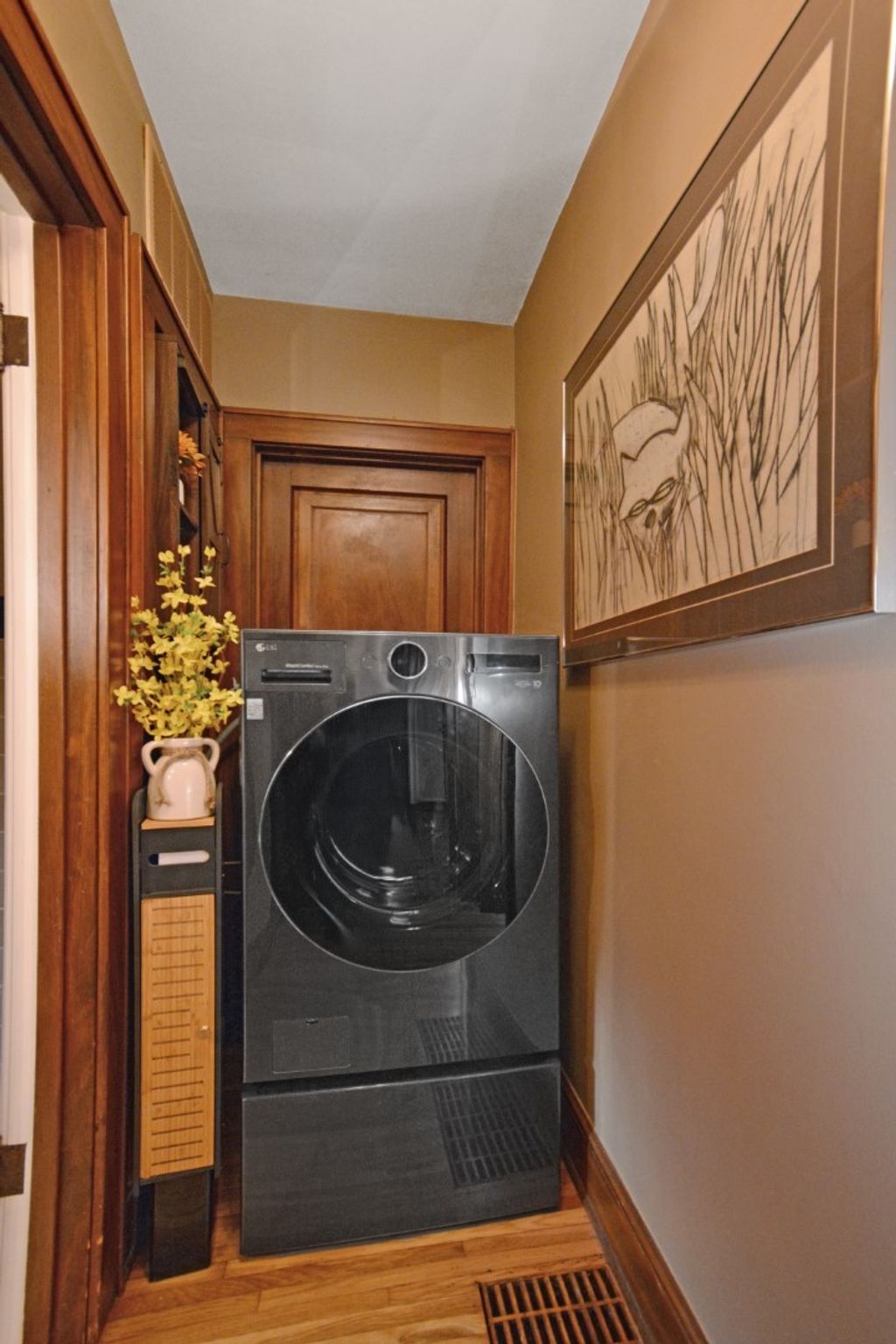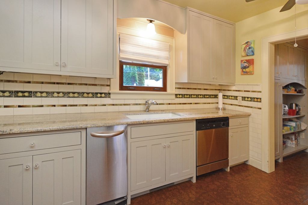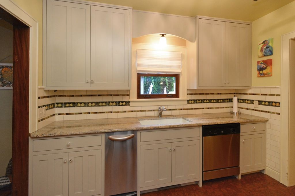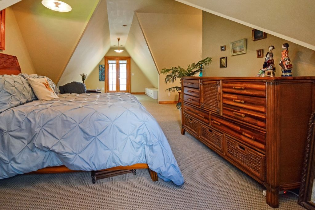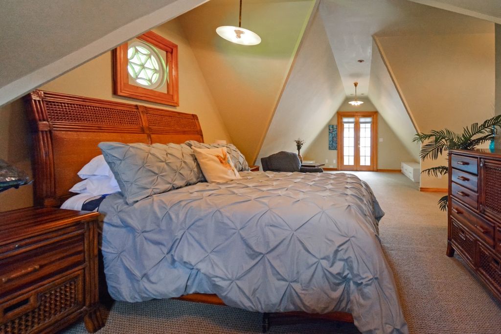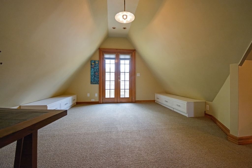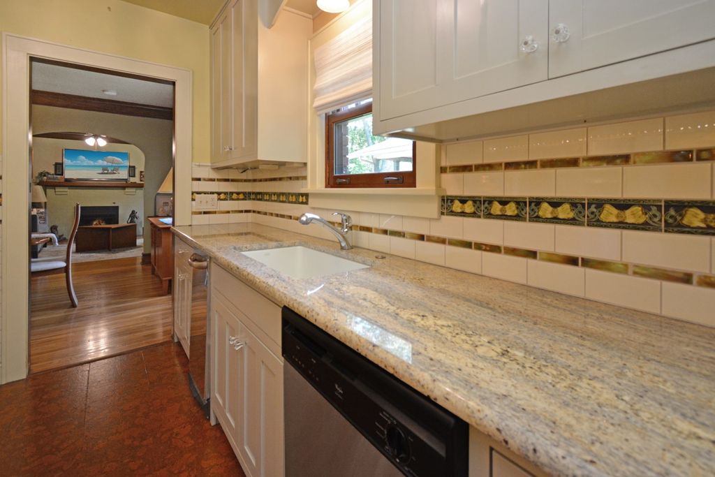 Located on one of the most picturesque streets in Founder's Grove, this 3 bedroom, 2 bath gem is quite possibly the most stunning all-brick bungalow in Bloomington-Normal! From the moment you step through the curve-topped front door, you'll be captivated by the home's timeless beauty: Original hardwood floors, natural wood trim, and elegant crown molding set the tone for a truly special living experience. This home has been meticulously maintained and thoughtfully updated with some of the finest upgrades imaginable. Two bedrooms and one full bath are located on the main level... however the expansive second-floor master suite is a true retreat, featuring a spacious living area, walk-in closet with high-end custom organizers, private balcony, en suite bath with a tiled shower and heated floors, and convenient laundry hookups. All three levels-including the basement, main floor, and second floor-offer laundry hook-ups, adding ultimate flexibility. The remodeled custom kitchen is a showstopper with granite countertops, new cabinetry, stainless-steel appliances, and a cozy breakfast nook. Additional recent upgrades include a new gas fireplace insert, new ceiling fans, and new custom window treatments throughout. Outside, you'll love the fully fenced and gated front yard, as well as the newer heated and insulated 1.5-car carriage-style garage with an attached covered patio. The professionally landscaped yard includes an irrigation system in the front and is surrounded by other character-filled homes. This home also features a real slate roof, copper gutters and downspouts, thermal-pane windows, zoned heating and cooling, and completely updated electrical and plumbing systems. All appliances stay-including the fancy LG washer/dryer combo on the main level. Truly a rare find that combines classic bungalow charm with top-tier modern updates-this home is a must-see.