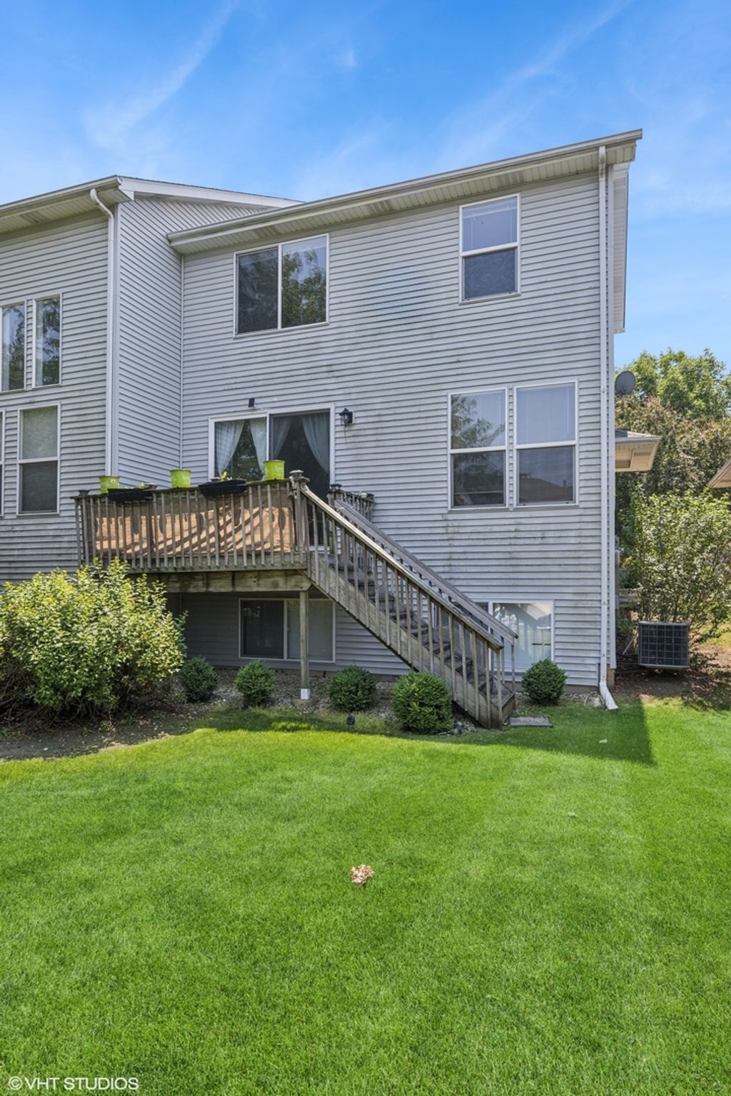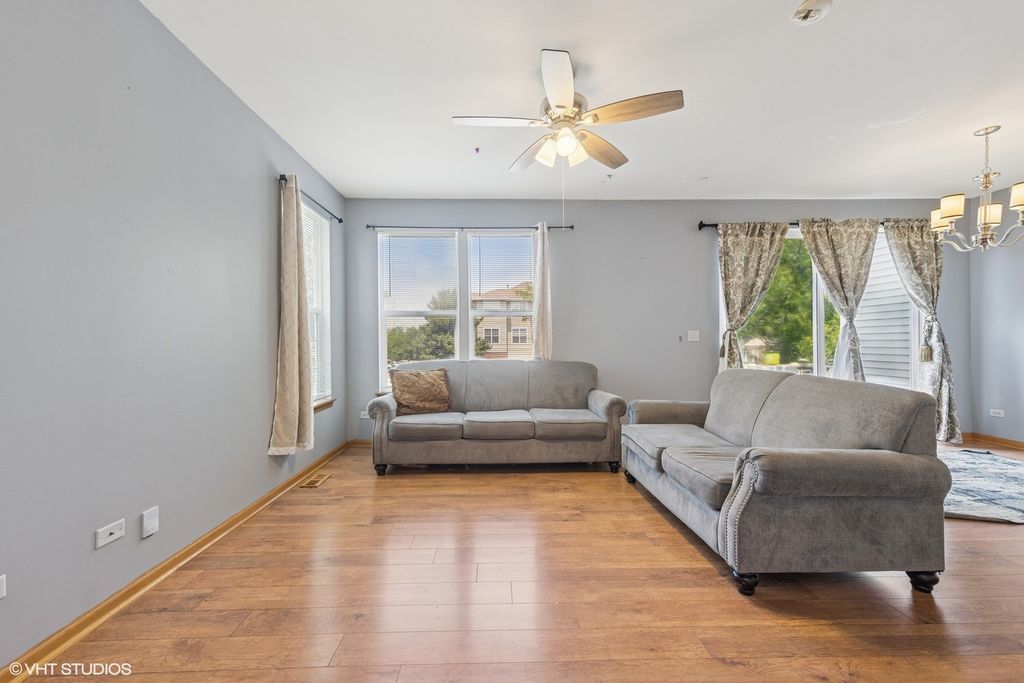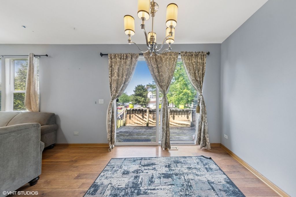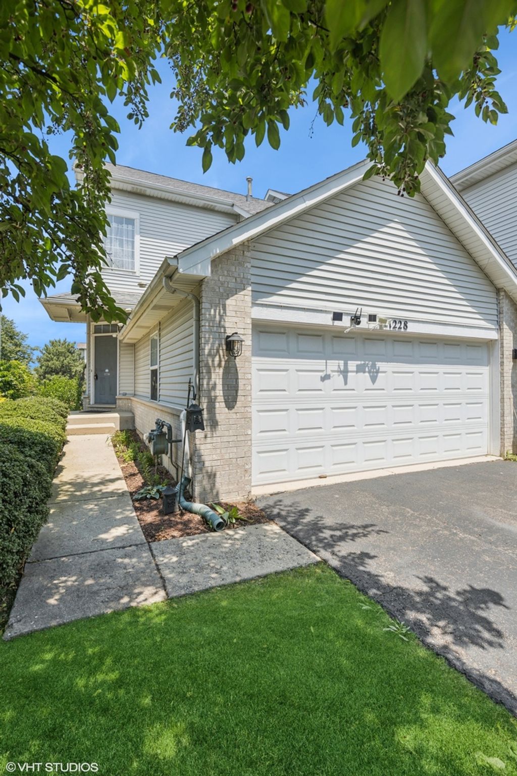 Welcome to this beautifully updated two-bedroom townhome with a finished basement, ideally located just minutes from Weber Road, shopping, dining, and with easy access to I-55. This home offers a bright, open floor plan with stylish laminate flooring, neutral color palette, and abundant natural light throughout. The kitchen is equipped with stainless steel appliances, a breakfast bar, and ample cabinetry-perfect for both everyday living and entertaining. The living room features 2" blinds, and the dining area opens to a private deck, ideal for outdoor enjoyment. Upstairs, you'll find two spacious bedrooms and a full bathroom with dual vanities, a tub/shower combo, and linen storage. The finished basement offers a versatile space with a full bath-ideal as a family room, home office, or potential third bedroom. Additional highlights include in-unit laundry with washer and dryer included, a 2-car garage, and recent upgrades: water heater (2022), Water Softener , garage door & opener (2015), and roof (2017). Located in the desirable Plainfield School District. Don't miss out on this great opportunity in ought-after Marquette Landing. EASY TO SHOW!! SOLD AS IS!!