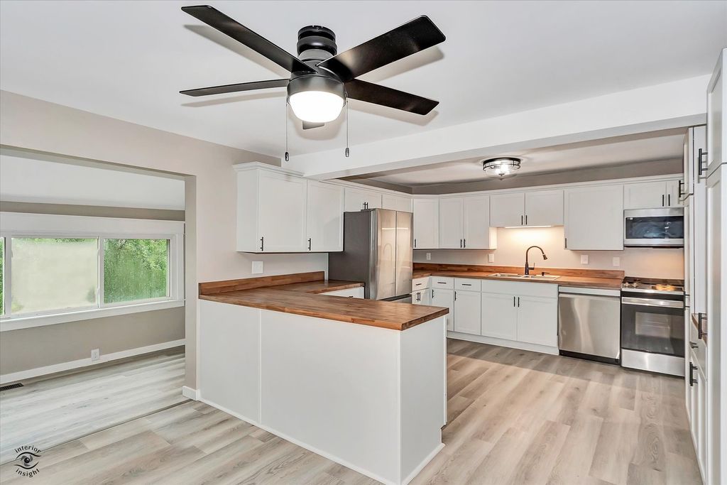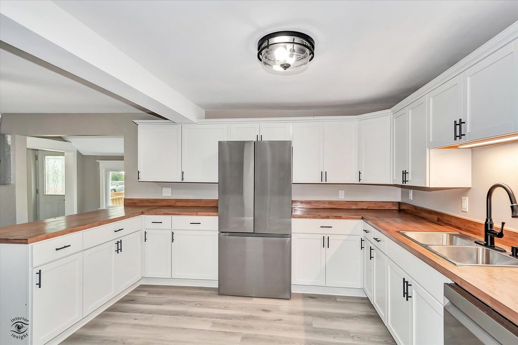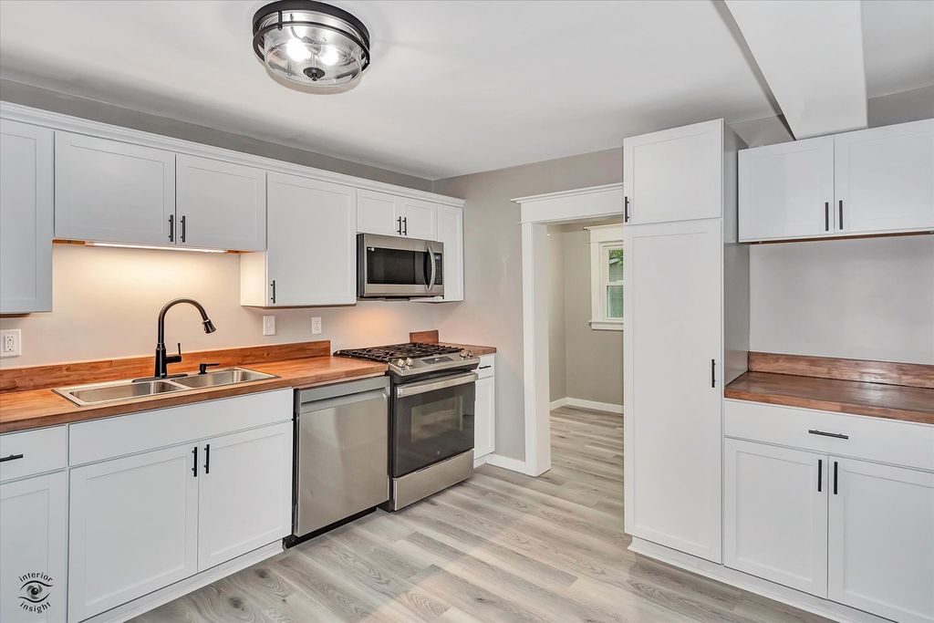 Step into this beautifully renovated home that blends modern finishes with functional living. The heart of the home is the stylish eat-in kitchen, featuring warm butcher block countertops, sleek stainless steel appliances, and plenty of space for casual dining. The spacious living room offers an inviting atmosphere-perfect for relaxing or entertaining. The lower level includes two comfortable bedrooms and two full bathrooms. Upstairs, you'll find a generously sized bedroom offering privacy. Outside, a standout feature is the oversized, deep garage. perfect for car enthusiasts, extra storage, or a home workshop. Newer HVAC and roof. Modern updates, and ample space make this a must-see property!