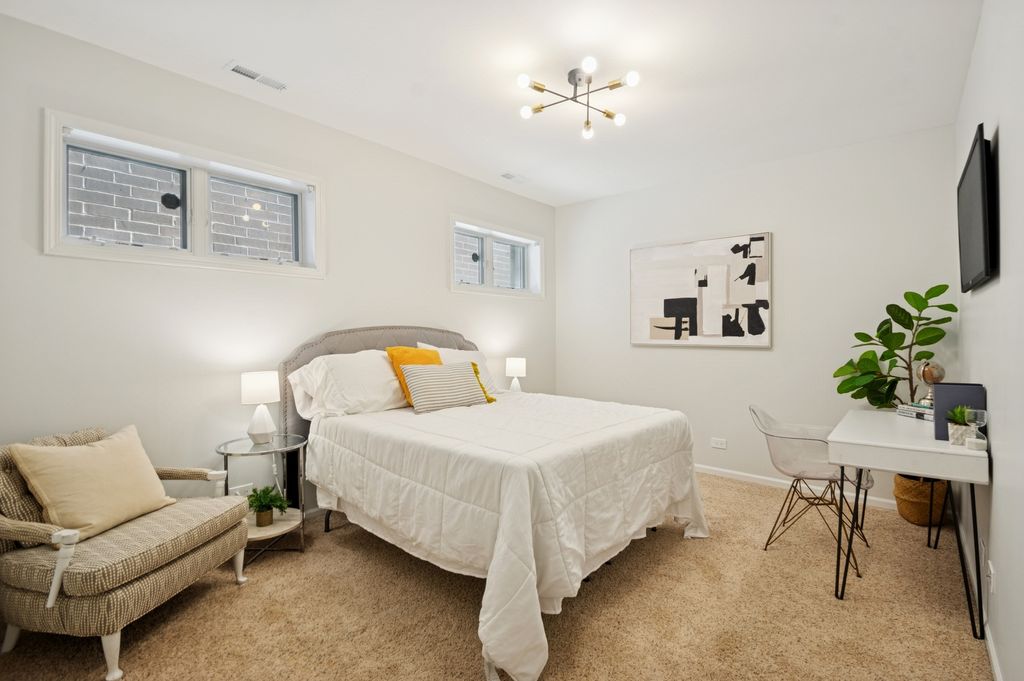 Blaine School District 3BR/3BA large duplex with two-car parking! Sunny home with wide floor plan features large living room with fireplace, separate dining area, and huge kitchen with 42" white maple cabinets, granite counters, stainless steel appliances, and pantry. Home features TWO en-suite bedrooms, one on each level, and both with walk-in closets! Owner may choose which one works best as the primary bedroom. Marble ensuite bathroom with jacuzzi tub, separate shower, and double vanity. Lower level is situated quietly in the back of the building, affording extra privacy. Condo also features a spacious laundry room with side-by-side washer/dryer, tremendous closet and storage space throughout, and a large back deck. Unit features two assigned parking spaces - one garage space and one gated outdoor space. Well managed association with entire building owner occupied. Great Southport Corridor location! Close to Blaine School, Trader Joes, Whole Foods, Brown Line CTA stations, Wrigley Field, several parks, shopping, restaurants, nightlife, and much more!
