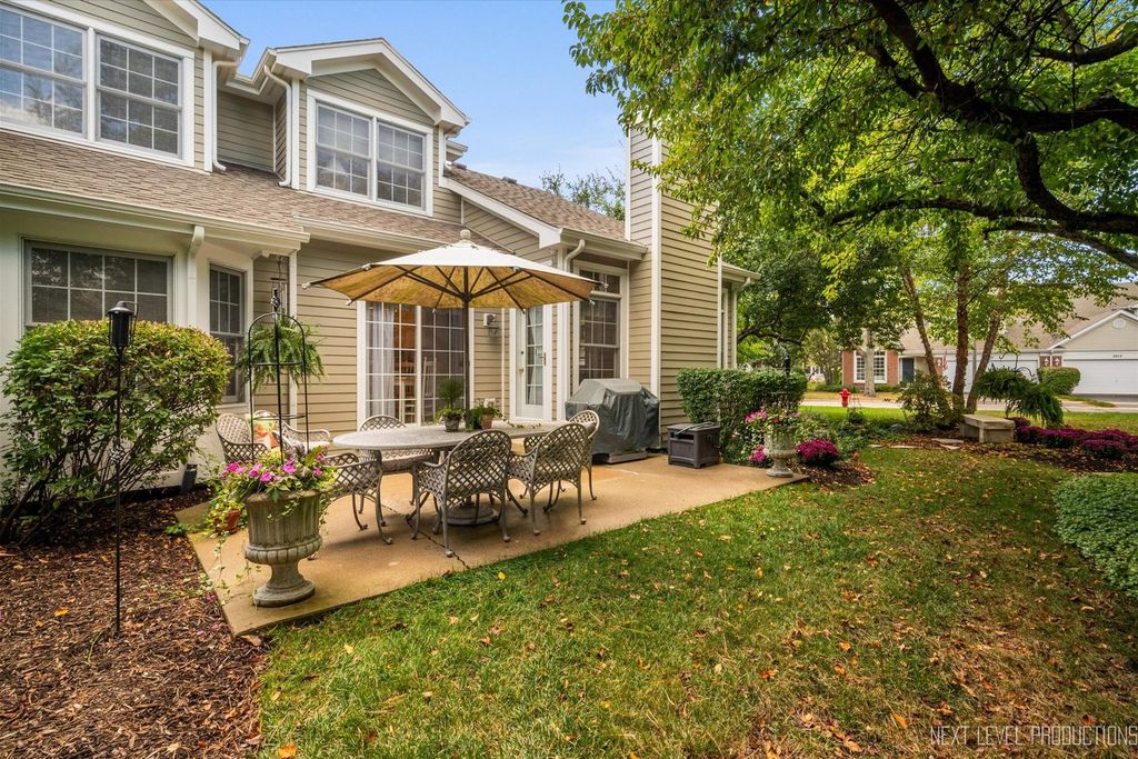 Impeccably maintained and tastefully appointed, this sun-filled townhome in the Townes of Fox Chase offers flexible living with a first floor master suite, in-law accommodations & one of the most picturesque yards in the neighborhood. Thoughtfully designed for comfort & functionality, this 4 bedroom home features a welcoming vaulted living room, formal dining area, family room with fireplace & a sunny eat-in kitchen with breakfast bar, planning desk, closet pantry & direct access to a private patio surrounded by lush landscaping perfect for entertaining or relaxing outdoors. Spacious 1st floor master has double door entry, walk-in closet & private bathroom with whirlpool tub, brand new shower, fixtures & lighting. Upstairs you'll find two big bedrooms, full bathroom & a versatile loft ideal for a home office, workout area or quiet retreat. The finished lower level has great flexibility for multigenerational living or guests featuring a complete in-law suite with a 4th bedroom, full bath with walk-in whirlpool tub, kitchenette, office, recreation room, game room, storage & 2nd laundry with utility sink & cabinets. Additional highlights: convenient 1st floor laundry, Ring doorbell, Ecobee thermostat & multiple bay windows. Many updates including: 2 yr old hardie board exterior, insulation, roof, gutters, 2 water heaters, sump pump, back-up & brand new driveway. Furnace has humidifier, dehumidifier & UV bulb purifier. Low HOA fees of $188 covers lawn maintenance & snow removal. East side convenience yet tucked away just minutes from highly rated East STC High School & Wredling Middle school, scenic bike trails, the Fox River, parks, shopping, dining & the vibrant charm of downtown St. Charles. Don't miss this rare opportunity!