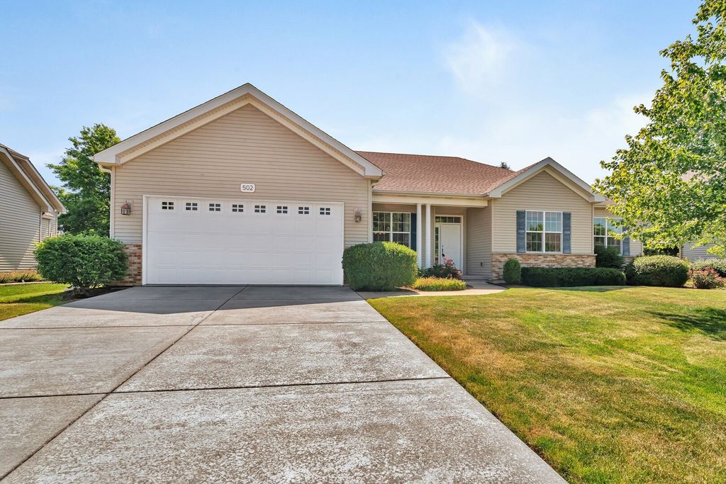 This quality built, one-owner ranch home, is nestled in Heartland Circle Subdivision. Its 2x6 constructed home has a 2-year-old roof and backs to open space and walking/bike trail. Follow the trail and find yourself in one of Heartland's own parks. Enter the home to 9-foot ceilings creating an inviting open feel. The entry's hardwood flooring seamlessly flows right into the formal dining room. The very generous living room with built-in shelving and tray ceiling boasts of natural light through the large windows with back yard views. The sun-drenched kitchen will draw you in with an abundance of 42" custom cabinetry including display cabinets, and over and under lighting. The island/breakfast bar is home for the kitchen sink and additional storage. There are enough quartz counter tops to present "a feast for a king". The butler's pantry joins the kitchen to the formal dining room. The kitchen table space provides your access to the concrete patio and backyard with stubbed in gas for grill. The master suite has a large walk in closet and private bath with double sinks and walk in shower with bench. The additional two bedrooms are spacious with generous wall closets. The main floor laundry room has cabinet storage, folding counter, and laundry sink. An open staircase takes you to the basement also with 9-foot ceilings. Some finished walls and rough in for a full bathroom await your finishing touches. The garage is a 3-car garage. Two doors face the front of the home, as one bay is tandem with a third overhead door facing the back yard. Perfect for additional storage, a large vehicle, or boat storage. Close to restaurants, shopping, banks, and major roads. Make this you new ranch home.