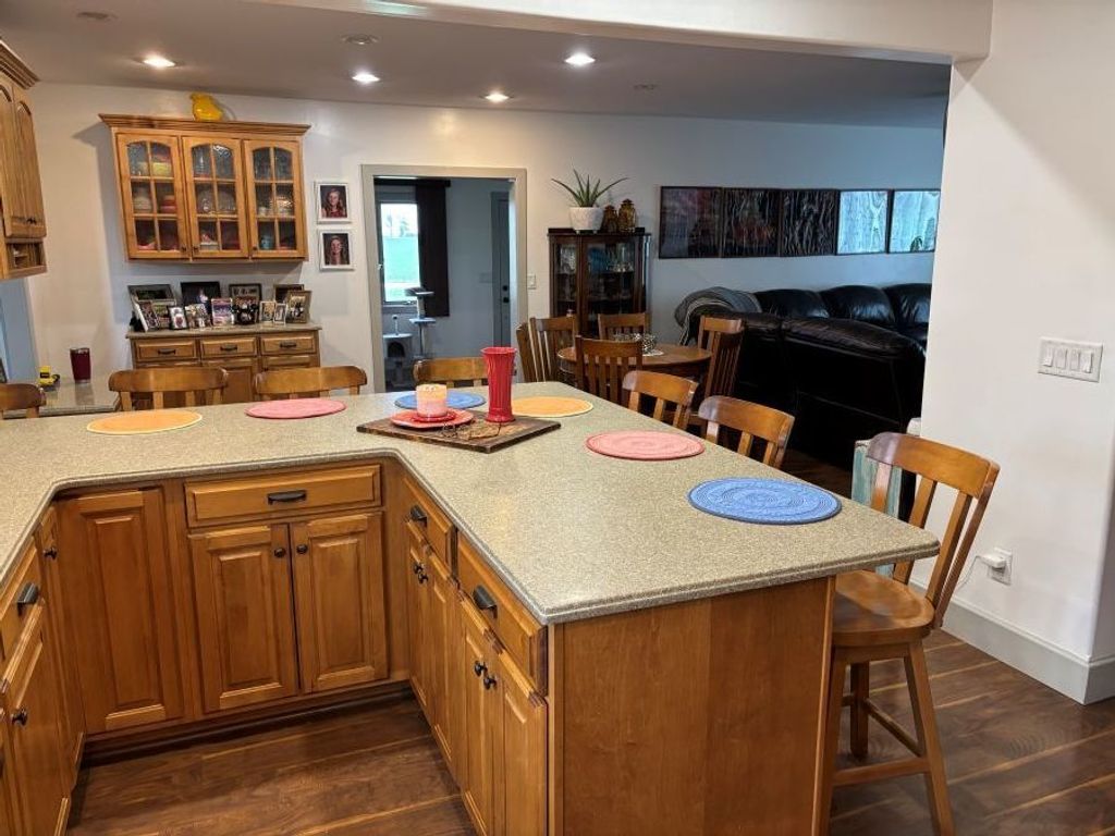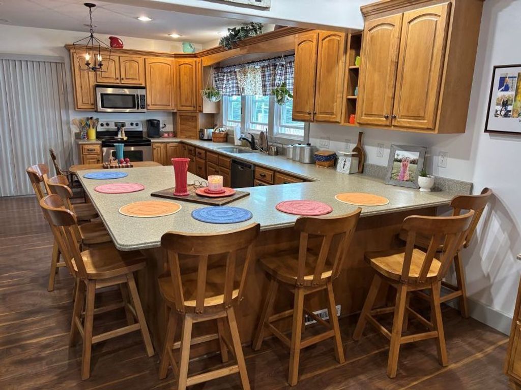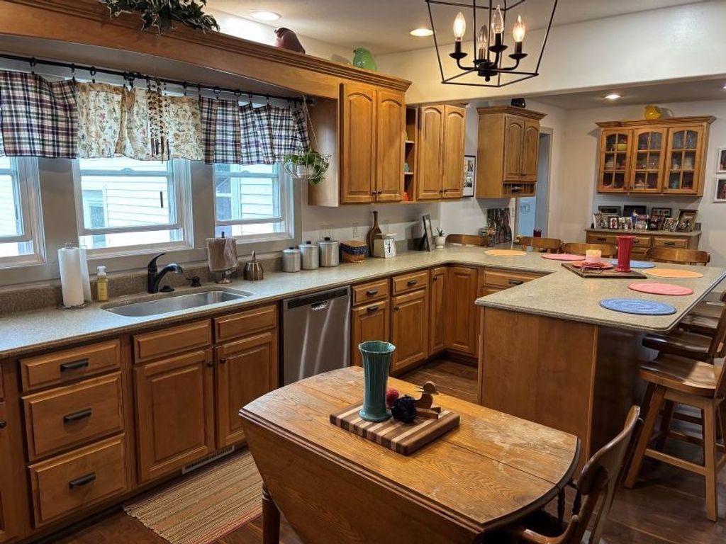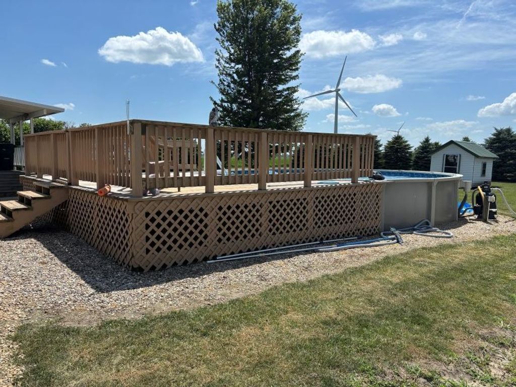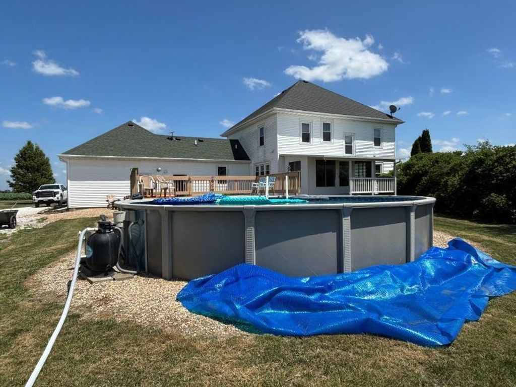 Great Country Home - 4BR, 2 Bath home on 1 acre. Home was totally remodeled in 2007 includes spacious Kitchen/Dining Room with Amish made maple cabinets, solid surface countertops, large snack bar with 7 stools, pull out shelves, nice pantry, range, microwave, dishwasher & disposal included. Large Living Room with gas FP that currently needs repair. The front porch is now additional living area being used as exercise and sitting room. The breezeway is used as utility room, includes laundry sink and storage cabinets. There is a 1st floor walk-in closet and linen storage near the 1st floor bath that is shower only. All of the Bedrooms are located upstairs, all nice size, 3 have closets. Full bath on 2nd floor includes tub and shower and updated fixtures. There is a walkup attic for additional storage. Laminate flooring thru-out and all windows replaced (except front porch) replaced in 2024, Geothermal furnace and on demand water heater 2018. Poured concrete basement offers additional space that could be utilized for many extras. The exterior boasts vinyl siding, enclosed back porch, 2 car attached finished & heated garage, 2 concrete patios, firepit area, above ground pool and wood deck both 2024, detached 1 car garage and kids playhouse. [There is an additional 1/4 acre behind the house that has 2 rows of evergreens that currently belongs to the farmer. It has been agreed that a buyer can include this piece if they pay the expenses in getting it transferred]. Move-in ready so don't miss out on the peace and tranquility of the country living.