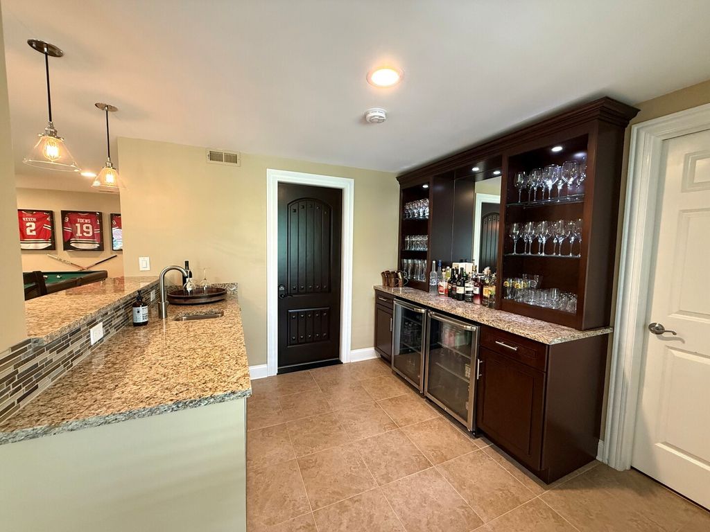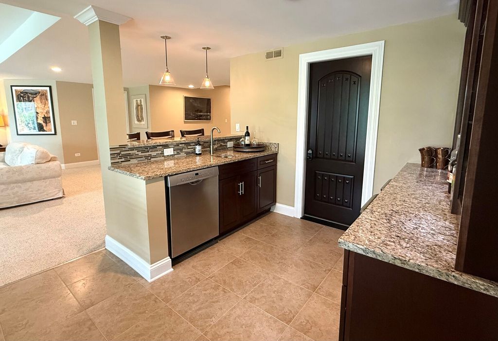 ELEGANT AND SURE TO IMPRESS, BACKING TO LAKE SOMERSET! This stately 2-story home with a full walk-out basement offers incredible space and scenic lake views of Lake Somerset from all three levels - including a balcony, deck, and patio. Over $450k in upgrades by current owners including a fully remodeled kitchen (2022), refinished hardwood floors and remodeled staircase (2022), remodeled powder room (2022), new Marvin Infiniti Patio doors and most windows (2024), brand new concrete driveway (to be completed July 2025), large composite deck (2019), sandstone patio and steps (2019), whole house back-up generator, wet bar, wine cellar and a freshly painted interior in today's most sought after color palette and more! The grand 2-story foyer welcomes you in and showcases a dramatic iron spindle staircase, flanked by a formal living room with a cozy fireplace and a separate dining room - an ideal setup for entertaining or everyday living. At the heart of the home is the impressive, newly remodeled kitchen and Butler's pantry, featuring custom Starmark cabinetry with elegant crowned uppers, stunning Cambria Quartz counters that extend up into the backsplash, JennAir stainless steel appliances, Brizo faucet, and an oversized island with breakfast bar seating. The sun-filled breakfast area opens to the deck with sweeping views of the backyard and Lake Somerset beyond. Back inside, the dramatic 2-story family room is highlighted by a wall of windows and a striking floor-to-ceiling stone fireplace - filling the space with warmth and natural light. A first-floor office offers privacy for remote work, along with a convenient mudroom, laundry room, and powder room. Upstairs, retreat to the expansive primary suite with a tray ceiling, large sitting area, and a luxurious bathroom. The walk-in closet leads to a hidden bonus room - ideal for a home gym, private office, or cozy hangout. Three additional bedrooms, all with generous closet space, and two full baths complete the second level. The finished walk-out basement expands your living space with a large rec room, third fireplace, wet bar, two additional bedrooms, full bath, and a 300+ bottle wine cellar - perfect for an in-law arrangement, entertaining, or weekend guests. Additional features include a 3-car garage, award-winning Libertyville High School, and top-rated Oak Grove Elementary. You'll love the location with easy access to Independence Grove, offering biking trails, parks, and a lake for canoeing, fishing, paddle boating, and more - plus endless shopping, dining, and everyday conveniences nearby. Don't let this one slip away!
