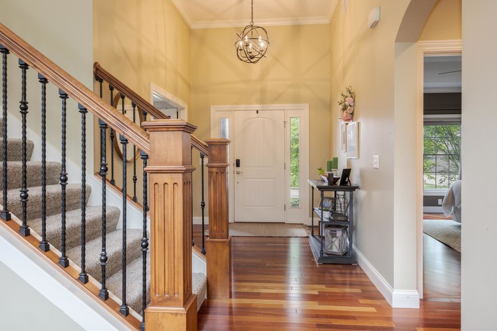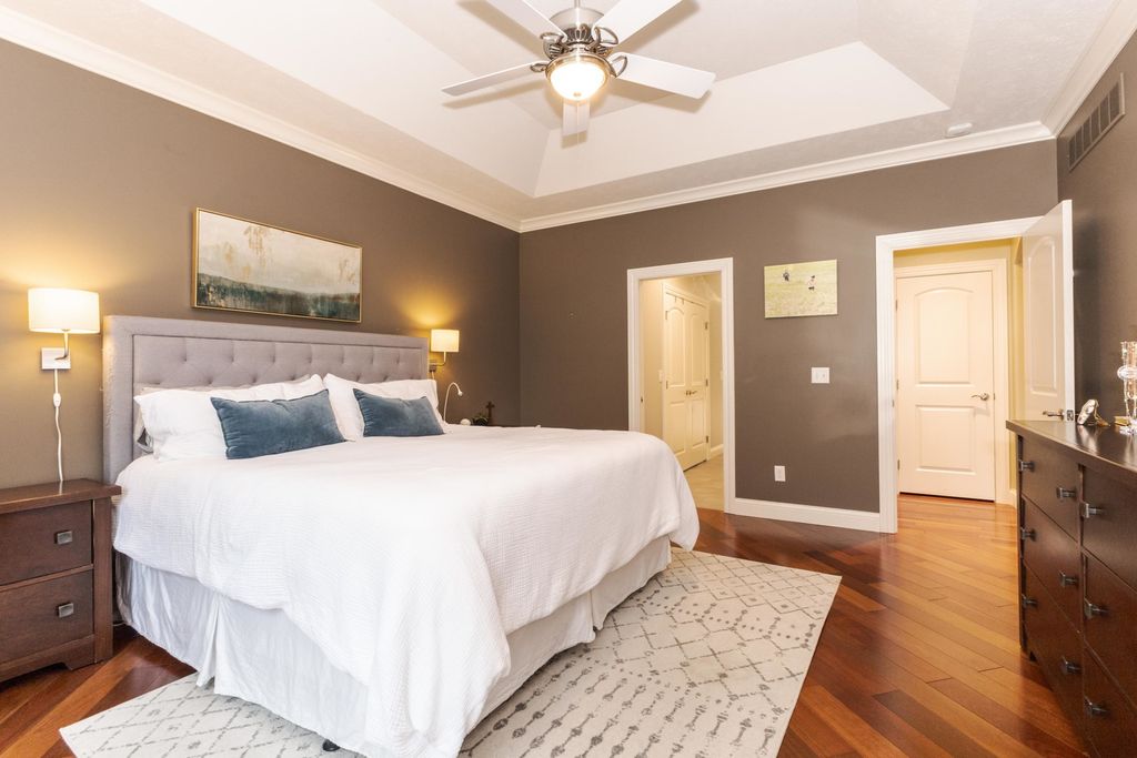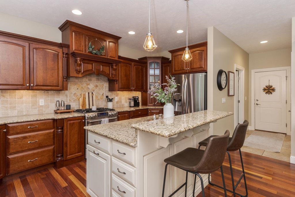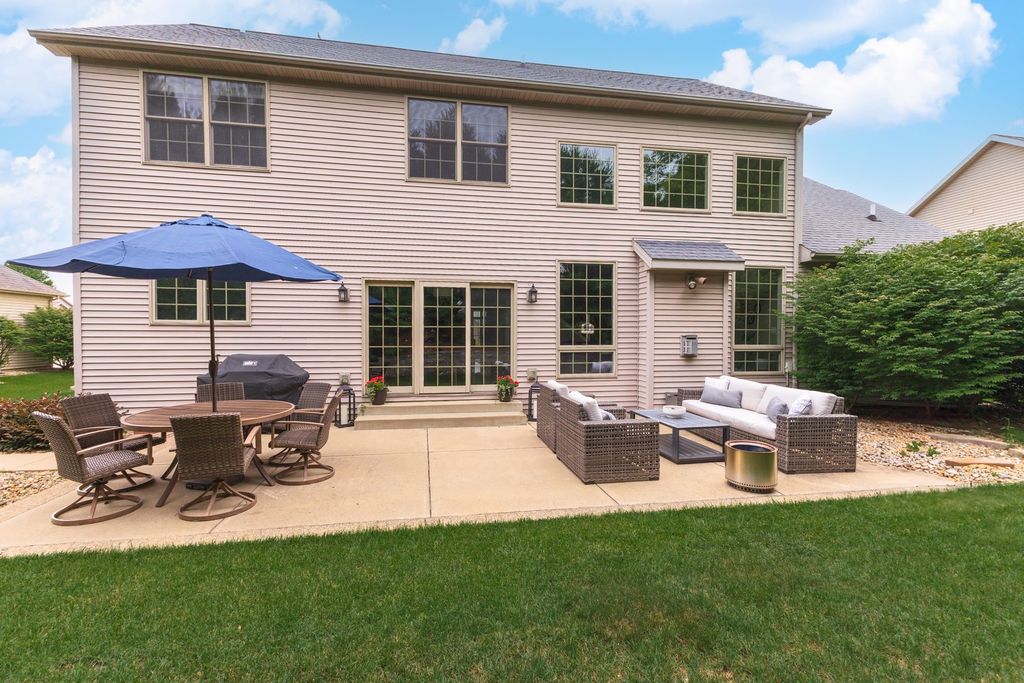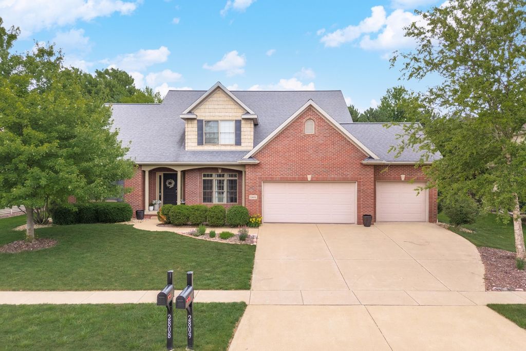 Gorgeous open and bright 1.5 story home in prestigious Royal Links Subdivision. Functional floor plan with two story entry and family room. Wood flooring throughout the main level. Custom eat in kitchen with granite countertops, stainless steel appliances, stone backsplash, island with seating, tons of cabinet space and butlers pantry/planning desk. Open family room with gas fireplace, dining room with decorative accent wall and French doors. Main level primary suite with beautiful hardwood flooring and spa inspired primary bathroom - recently renovated in 2019. Second level open loft with custom built in bookshelf and window seat. Two additional bedrooms on the second level with a full bathroom. Oversized and open basement with family room and wet bar, additional basement bedroom, full bathroom and ample storage space. Private backyard with mature trees, professional landscaping and a gorgeous backyard patio-perfect for entertaining. *Information deemed reliable but not guaranteed*