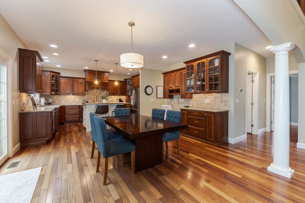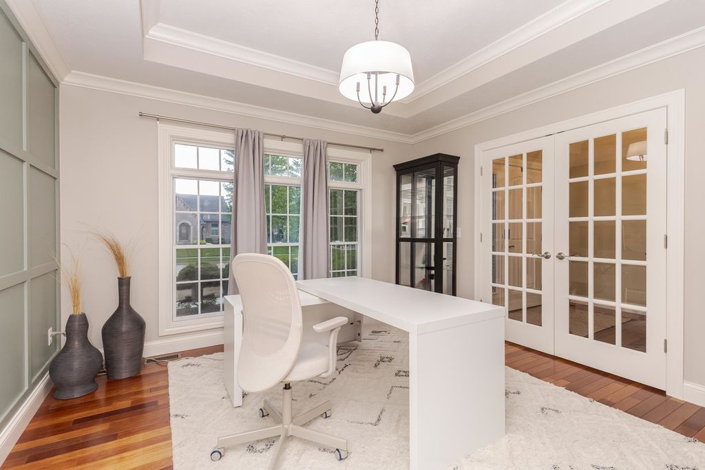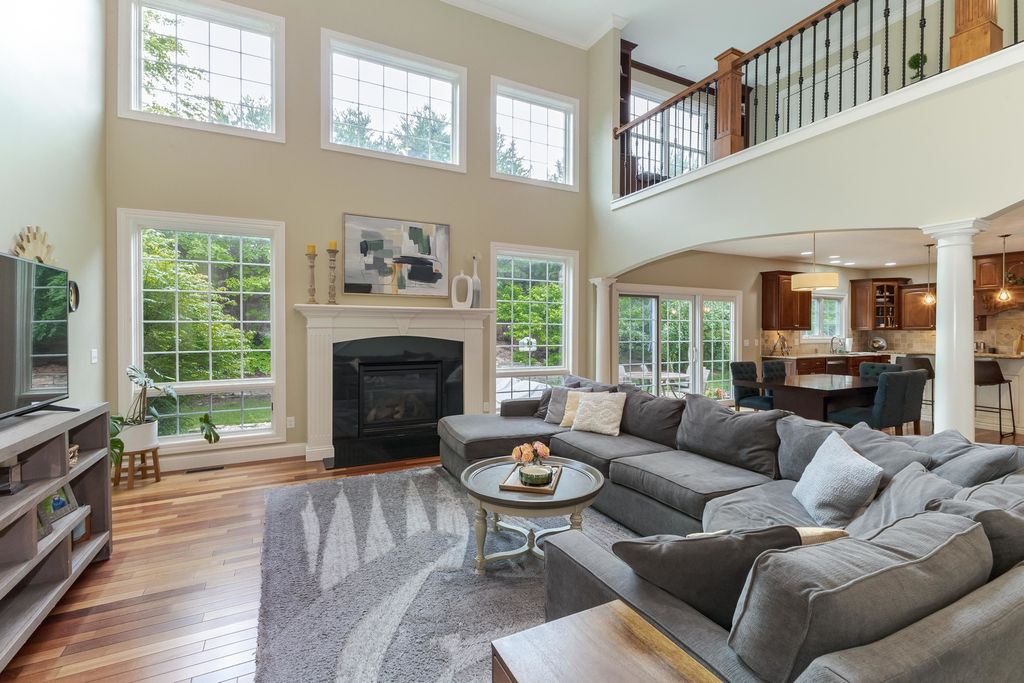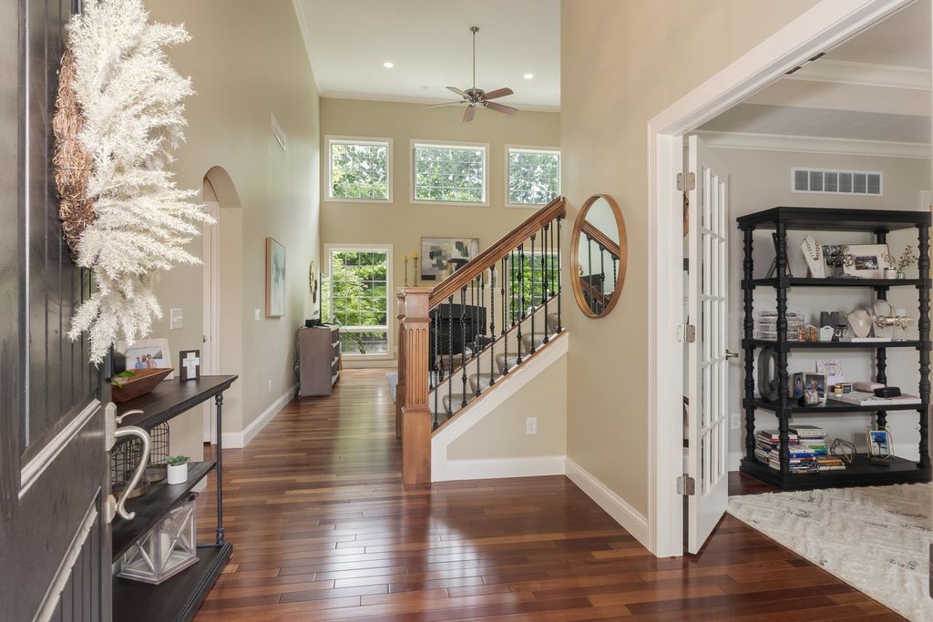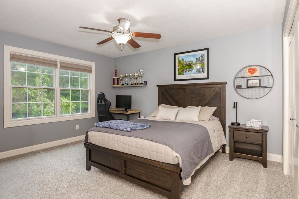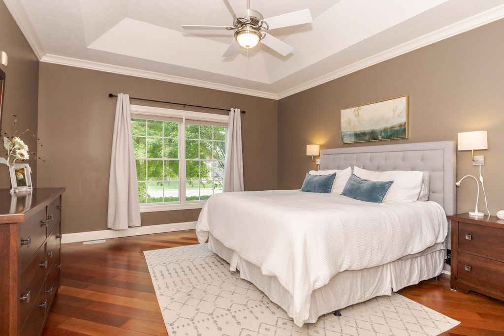 Gorgeous open and bright 1.5 story home in prestigious Royal Links Subdivision. Functional floor plan with two story entry and family room. Wood flooring throughout the main level. Custom eat in kitchen with granite countertops, stainless steel appliances, stone backsplash, island with seating, tons of cabinet space and butlers pantry/planning desk. Open family room with gas fireplace, dining room with decorative accent wall and French doors. Main level primary suite with beautiful hardwood flooring and spa inspired primary bathroom - recently renovated in 2019. Second level open loft with custom built in bookshelf and window seat. Two additional bedrooms on the second level with a full bathroom. Oversized and open basement with family room and wet bar, additional basement bedroom, full bathroom and ample storage space. Private backyard with mature trees, professional landscaping and a gorgeous backyard patio-perfect for entertaining. *Information deemed reliable but not guaranteed*