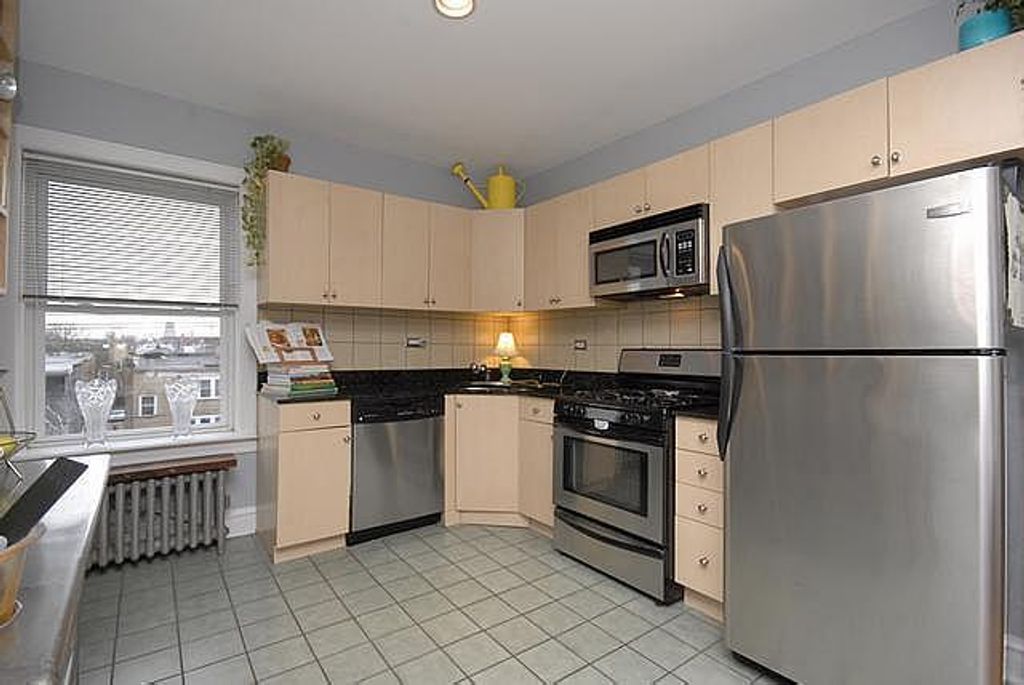 Bright and spacious East Albany Park top floor 2 bed/1 bath condo at the Manors of Leland on a quiet tree lined street. Kitchen w/granite countertops, full tiled backsplash & stainless steel appliances. Large living room features decorative fireplace & charming built-in cabinets. Separate dining room with access to a shared deck. Two nice sized bedrooms with large closets. Ceramic tile bath, hardwood floors, three ceiling fans, full-size front-loading washer/dryer. Private storage S-6 in basement & shared courtyard. Heat & water included in assessments. Amazing location is close to Ravenswood Manor, Lincoln Square, restaurants & shopping including Starbucks, Noon O Kabab, First Slice, and Khepri Cafe, Kedzie Brown Line stop, Horner Park & the Chicago River. Pet & investor friendly building! Deeded parking space P-3 available for $15,000.