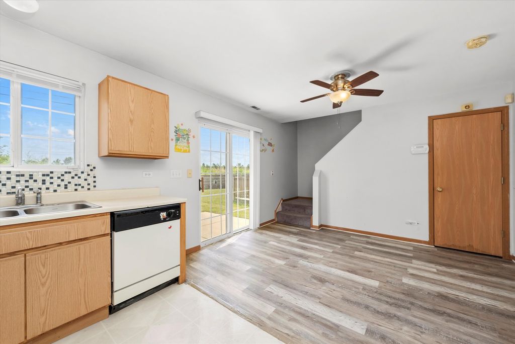 Beautifully maintained townhome with a nice view of all seasons from the backyard, blending comfort and style in one. This sunny and spacious home features two bedrooms, one and a half bathrooms, and each bedroom has an oversized walk-in closet. This home has a second-story laundry room. This home has a spacious kitchen with a spacious pantry. Step inside to an open-concept main level filled with natural light, fresh neutral tones, and easy flow. The spacious living area seamlessly connects to a bright kitchen, ideal for enjoying morning coffee or entertaining friends. A concrete patio offers peaceful views, perfect for relaxing or entertaining. Outside, suitable for summer nights or weekend BBQs. The refrigerator is one year old. The AC unit is three years old. Schools also have good ratings, and the school bus stop is conveniently located near home, with minutes to schools, dining, shopping, and parks. The community also features a playground and more. Low taxes, low HOA, and move-in ready! Homes like this don't last long - see it before it's gone! Just unpack and enjoy! Incredible value with only $150/year in association dues! Don't miss your opportunity-schedule your showing today. Welcome home!