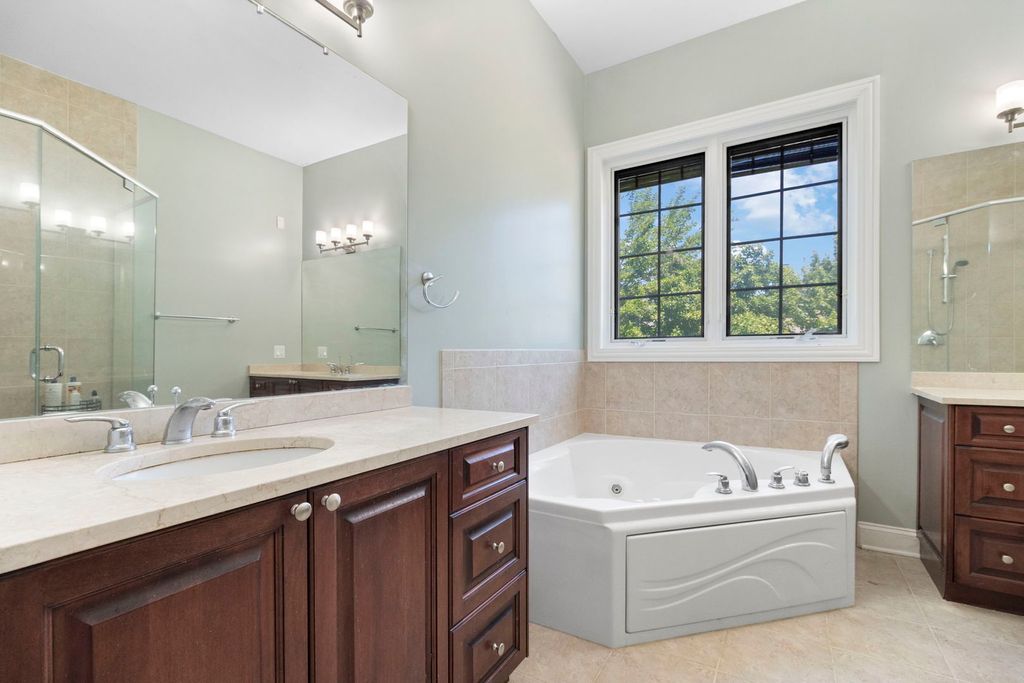 Experience refined living in this grand 6-bedroom home, thoughtfully designed with luxury and comfort in mind. Built in 2008 and meticulously maintained by its original owners, this stately home offers an exceptional floor plan featuring two primary suites - one on the main level and another upstairs - ideal for multigenerational living or ultimate guest privacy. Soaring ceilings and expansive Pella windows bathe the interiors in natural light, highlighting the rich hardwood floors that flow throughout the home. A dedicated main-level office provides a sophisticated space for remote work or study, while the fully finished basement includes an additional bedroom and generous living areas for entertainment or extended stays. This exquisite residence offers timeless architecture & enduring quality, all with in excellent school districts. Don't miss your chance to own a truly exceptional property.