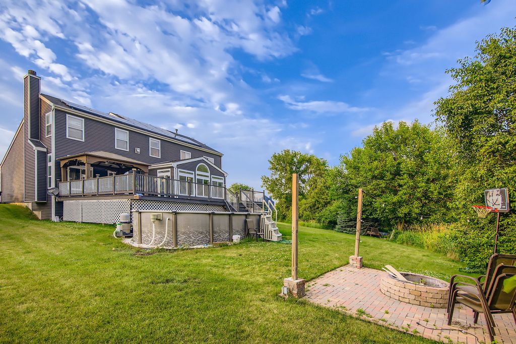 Welcome to 22554 W Reserve Circle, where timeless elegance meets modern comfort in one of Plainfield's most desirable neighborhoods. Nestled in the coveted "Woodlands of The Reserve" subdivision, this beautifully maintained two-story home built in 2001 offers 4 bedrooms plus an additional one in the basement, 2.5 bathrooms, and approximately 3,050 sq ft of refined living space on a spacious 0.33-acre lot. Step into a dramatic two-story foyer, framed by elegant columns and a sweeping oak staircase. The open-concept main level is ideal for entertaining, featuring gleaming hardwood floors and abundant natural light that fills every corner. The gourmet kitchen is a culinary enthusiast's dream, equipped with stainless steel appliances, a pantry, island, breakfast bar, and vaulted sunroom/eating area perfect for everyday meals or special occasions. The kitchen was updated in March 2021. The adjacent family room features 9-foot ceilings, and a cozy gas fireplace, creating a warm and inviting space for relaxation. A formal dining room and versatile living room add even more space for hosting and gathering. Upstairs, retreat to a luxurious primary suite with a raised platform, three-sided fireplace, spa-style bath with separate shower and soaking tub, and an expansive walk-in closet. Three additional generously sized bedrooms and a second-floor laundry room provide both functionality and comfort. The basement features a full bathroom and a finished room completed in October 2022 offering endless possibilities for recreation, a home gym, or additional storage Outdoors, enjoy the beautifully landscaped backyard with a spacious patio and serene views of the wooded backdrop perfect for alfresco dining or peaceful evenings. The deck was built in June 2020, and a Unilock brick fire pit was also installed that same year, providing the perfect spot for relaxing and entertaining. A handy storage shed adds convenience. Please note, there is a pool currently on the property, but it may be remove Additional updates include roofing and siding completed in July 2020, with a transferable warranty Solar panels were installed in July - August 2023 through SunRun and the system is transferable. With a fireplace, ceiling fans, and a two-car attached garage, this home is move-in ready. Located just minutes from I-55, downtown Plainfield, parks, shopping, dining, and top-rated schools this exceptional property offers the perfect blend of style, space, and location. Schedule your private tour today and experience the unmatched charm and sophistication of 22554 W Reserve Circle.