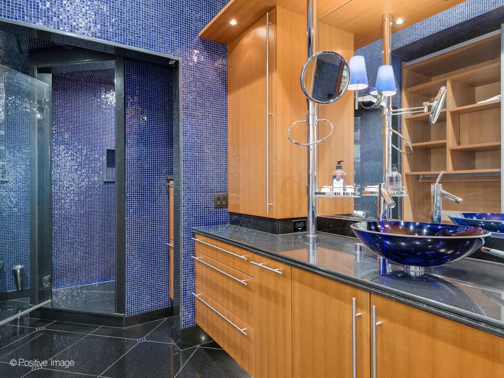 Welcome to the epitome of penthouse living in Chicago's premier River North neighborhood! This impressive home was designed with entertaining in mind with over 10,000 SF of indoor/outdoor living in the heart of the city! Residence 1006 boasts over 5000 SF of interior space, with four balconies off the main living level and a private, 5000 SF award-winning roof deck and garden. From the moment you step inside, you are mesmerized by the grandeur of the soaring 11' ceilings, striking European finishes and panoramic city views. The expansive living area has multiple seating areas, windows that flood the space with natural light and a separate bar area with its own dishwasher, refrigerator and 700 bottle wine cellar. The gourmet kitchen is a true Chef's masterpiece complete with a $10K Gaggenau oven, 3 dishwashers, 4 sinks, oversize SubZero refrigerator/freezer, separate refrigerated drawers, pizza oven and its own washer/dryer. The perimeter kitchen counter has seating for 10 and there is a back kitchen with additional counter space for a cozy morning coffee or more intimate dining. The spectacular primary suite has two bathrooms, 120' feet of custom Poggenpohl closets, a real wood burning fireplace, and a separate den/office with beautiful custom millwork - the perfect owner's escape. The real show stopper is the 5000 SF private roof deck, built out with every imaginable amenity to indulge your senses and whims. From the 4-hole putting green, to the timed irrigated flower and fruit garden that produces grapes, tomatoes and herbs, the Kalamazoo outdoor kitchen w/ pizza oven and rotisserie, multiple lounging and dining areas with pergola and a heated shed perfect for potting makes this a true urban paradise! Building Amenities Include: 24hr door person/security, on-site dry cleaners, attended package room, onsite maintenance and courtyard Additional Storage Included: 10'x20' private storage room 3 storage cages separate bike storage Parking: TWO prime garage parking spots INCLUDED in the price with a 3rd space available for purchase at $75K. Incredible location: just steps from some of the city's best restaurants, nightlife, shopping and East Bank Club is only 1 block away. This is the ultimate in urban living! All furniture available for sale, please speak to list broker for further details.