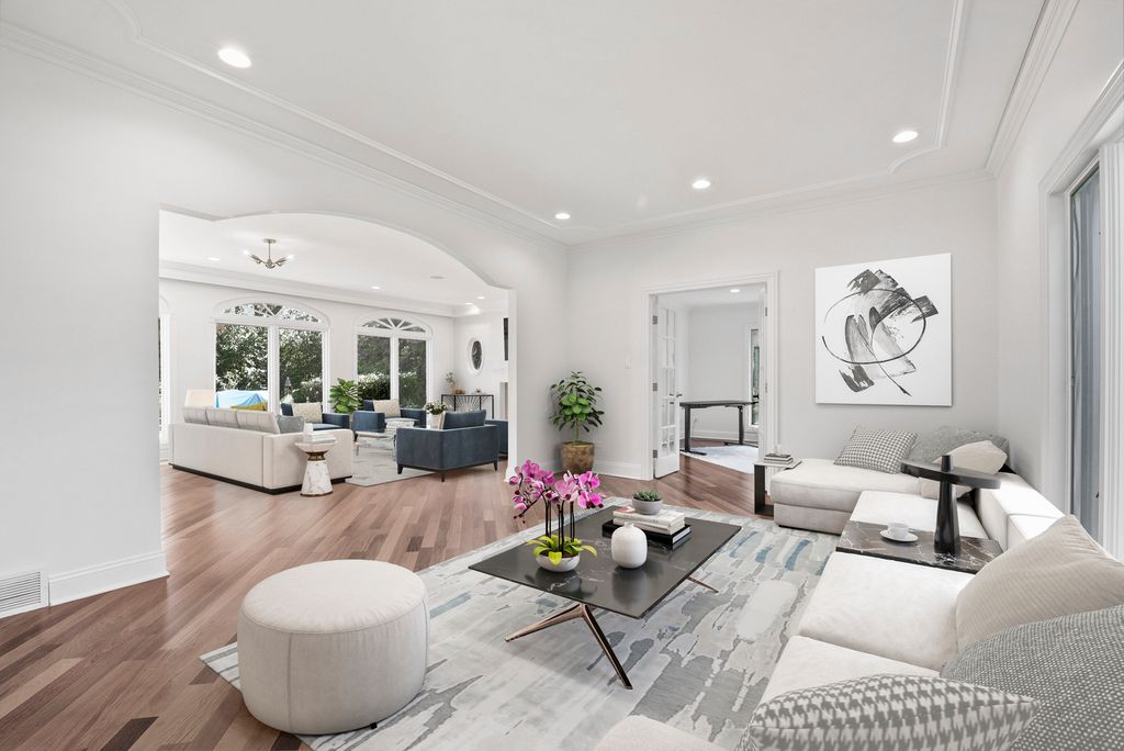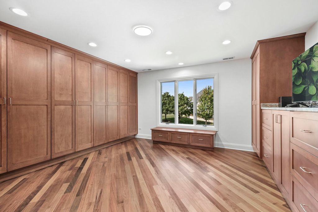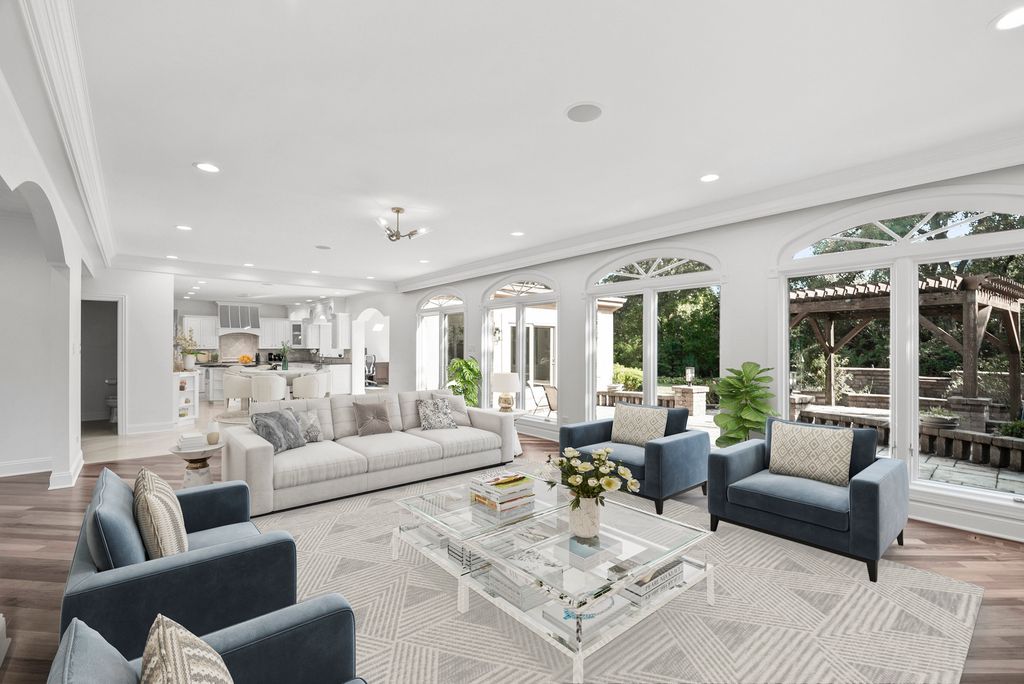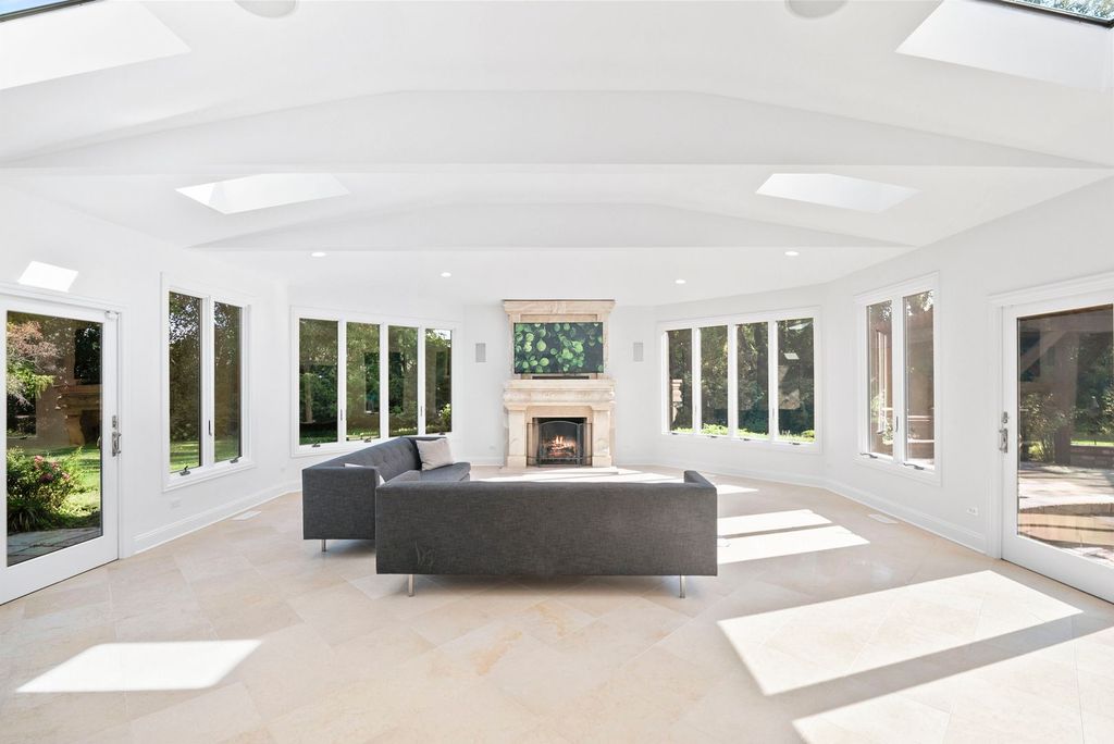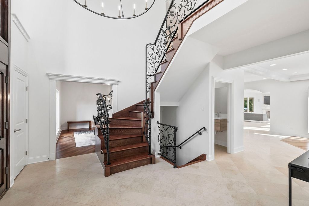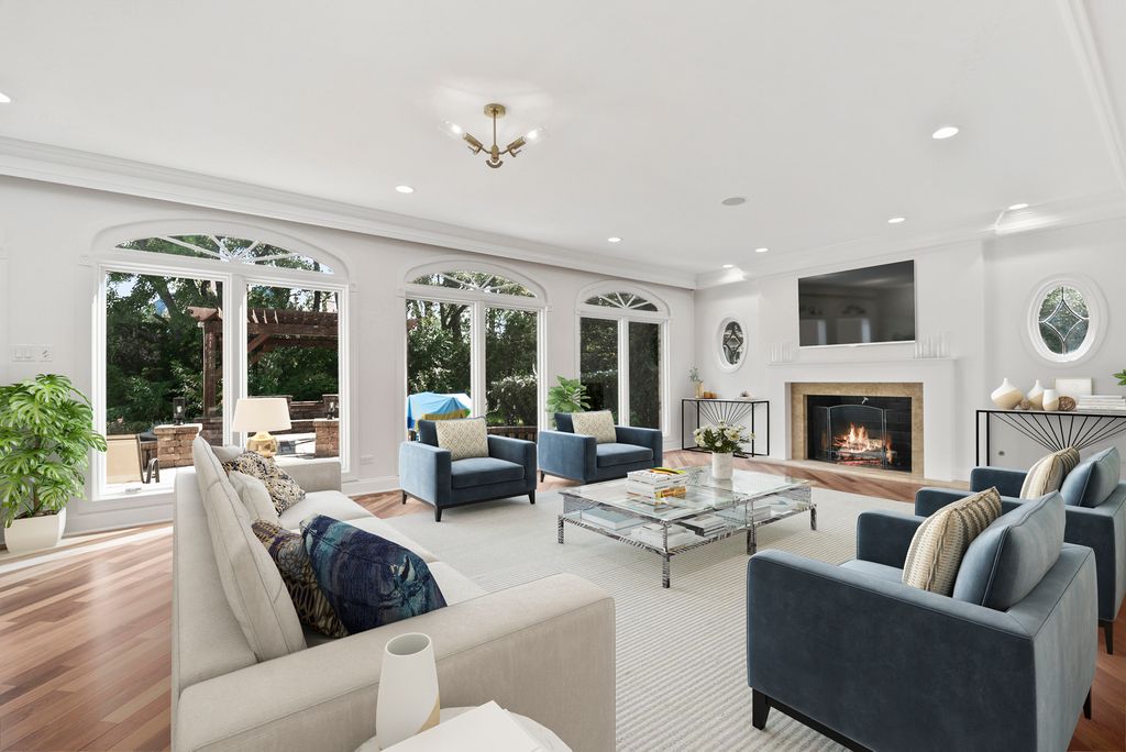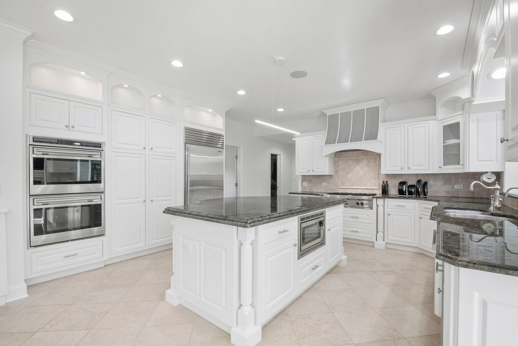 Beautifully appointed updated sunlit home in Heather Fields, Burr Ridge. Hinsdale Elementary School District 181 (Elm Elementary School and Hinsdale Middle School) and Hinsdale Central High School. Large interior lot. 6 bedrooms and 6.2 bathrooms, heated 3 car garage. Great attention to detail and finest appointments throughout. Open floor plan, fine millwork, crown molding, hardwood flooring, walls of windows, skylights, rooms of grand proportions and great ceiling height. Newly painted through out with modern colors and all new lighting and lighting fixtures throughout. New powder room. Grand 2 story foyer with dramatic chandelier and staircase with iron railings. Expansive formals, family room with newly finished fireplace, dining room with chair rail, gorgeous sun/florida room with a limestone fireplace, numerous skylights and patio doors. Chef's kitchen open to the breakfast room, family room, and the sun room. The spacious kitchen has an island, breakfast bar, newly finished custom wood cabinetry, tile backsplash, stainless steel high end appliances including Subzero refrigerator, Wolf cooktop, Wolf double oven, new Bosch dishwasher, instant hot and cold water dispenser. The kitchen is open to the breakfast room, sun room and the family room. There is a second auxiliary kitchen/pantry which includes Wolf cooktop, Bosch dishwasher and Frigidaire refrigerator and freezer with water dispenser, lot of custom cabinetry and granite countertops. Large mudroom with custom coat closets and bench. A separate office with french doors to the living room. The whole house is bright and lots of light throughout. The second floor has 5 spacious bedrooms, all with ensuite bathrooms and walk in closets. The primary bedroom suite has an amazing custom large walk in closet and luxurious primary bathroom. The finished basement has an additional bedroom and full bathroom and recreational area, kitchen, bar and a second laundry area. This home is perfect for family living and entertainment. The professionally landscaped yard is perfect for outdoor enjoyment and includes a pergola, firepit, expansive brick paver patio and all new lighting fixtures and sconces.There is a brick paver circular driveway and side drive and a beautiful waterfall feature in the front yard. Central location with easy access to major roads and highways, Burr Ridge Village center, Lifetime Fitness, Kathy Legge Park and a few minutes drive to Hinsdale Metra Station.