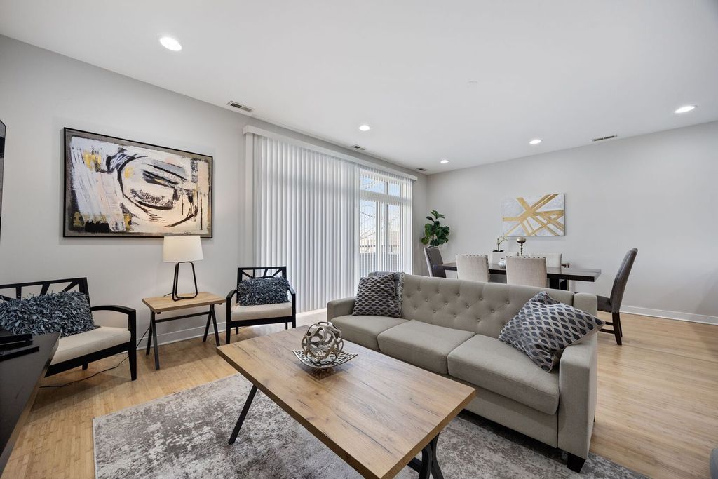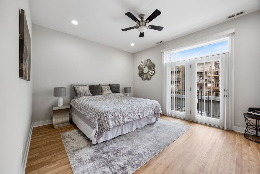 LAST UNIT LEFT IN THE BUILDING FOR SALE - AMAZING AND LOWEST PRICE ON THE BLOCK - Very Beautiful 3BR/2 bath with open concept kitchen with unobstructed private deck with views of Chicago skyline. Watch the breathtaking sunsets from the deck or from the living room balcony. Kitchen is open to living room and features quartz counter tops, and peninsula. Primary bedroom has an suite bathroom with beautiful walk-in shower , modern glass shower doors and soak in tub. Washer/dryer in the unit. Building features gated parking spot that comes with the unit, new deck and roof. Fantastic location close to the park, public transit, restaurants, expressway and more! Investor friendly - no rental cap!