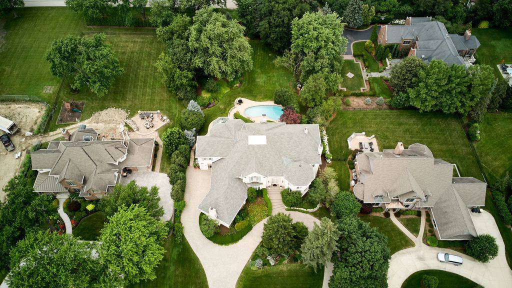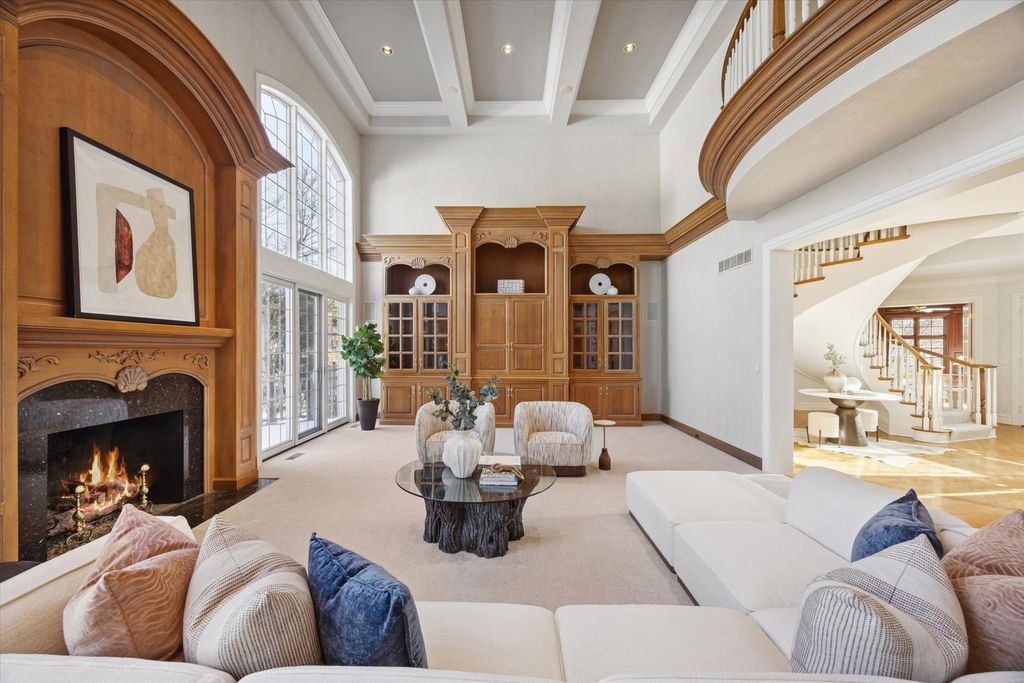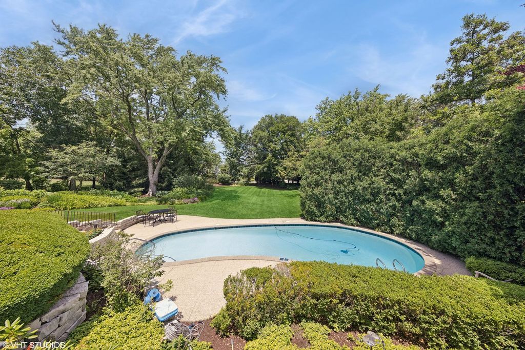 Custom-built by Wendell Builders and meticulously maintained by the original owner, this exceptional home is set on nearly an acre of professionally landscaped grounds with irrigation and a fully fenced, resort-style backyard. A paver circular driveway and oversized 3.5-car radiant heat garage provide striking curb appeal. Inside, a grand foyer with curved staircase opens to a great room with soaring 24-foot ceilings, backyard views, and deck access. The home offers 6 bedrooms, 5.2 baths, including a first-floor bedroom suite and a spacious primary suite with sitting room. Additional highlights include a true chef's kitchen, dual staircases, sunroom with radiant heat, wood-paneled library, built-in bookcases, and four gas fireplaces. The English basement features radiant heated floors, kitchen, bedroom with full bath, and abundant storage. Oversized mudroom with pool-access bath and stackable washer/dryer. Updates include roof (approx. 8 yrs), replaced appliances, water heaters(2022), sump pump with battery backup and generator. Pool professionally maintained. A rare opportunity offering space, privacy, and timeless quality.