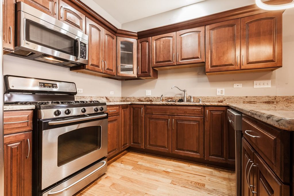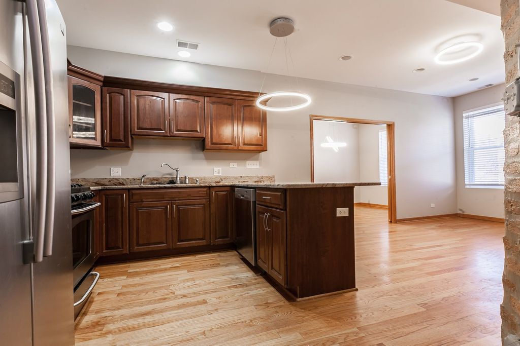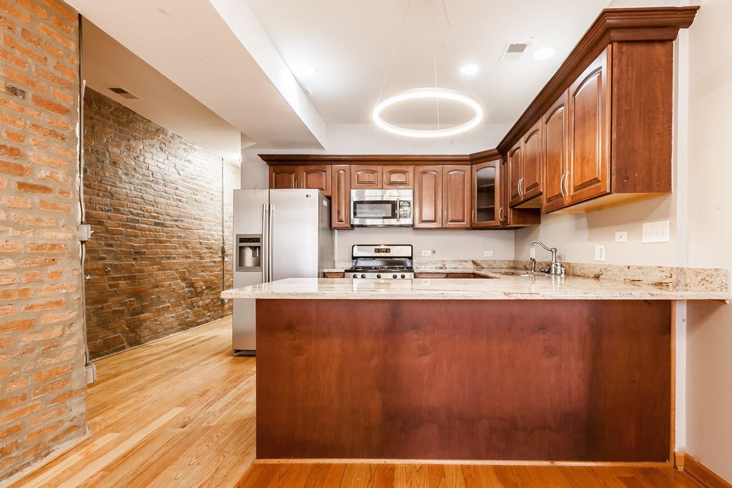 Welcome to The Grand Prairie in Bronzeville! This stunning 3 bedroom, 2 full bath unit offers modern living with a touch of character. The unit features granite countertops, hardwood floors throughout, and exposed brick accents that add warmth and style. The kitchen is equipped with stainless steel appliances, perfect for culinary enthusiasts. Enjoy the convenience of in-unit laundry and relax in the whirlpool tub after a long day. The back porch provides a private outdoor space, while the gated parking ensures security and peace of mind.
