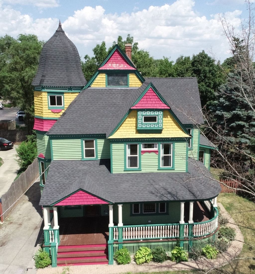GORGEOUS WEST-SIDE PLAQUED PAINTED LADY WITH FOUR LEVELS OF LIVING SPACE. BUILT IN 1893 FOR A&A KROGSRUD, AN EMPLOYEE OF ELGINS WATCH CO. THIS HOME HAS BEEN MODERNIZED WHILE KEEPING THE ORIGINAL FEATURES. ORIGINAL HARDWOOD FLOORS AND MILLWORK TROUGHOUT, PILLARS, CROWN, POCKET DOORS, OPEN STAIRCASE AND STAINED GLASS ARE JUST SOME OF THE FEATURES. WRAP AROUND FRONT PORCH WITH SEPARATE DOOR FROM DINING ROOM. LIBRARY ROOM WITH COMPLETE FLOOR TO CEILING BOOKSHELVES ON ALL WALLS. FAMILY ROOM WITH WB FIREPLACE AND PICTURE WINDOWS OVERLOOKING YARD. FRONT AND REAR STAIRCASES TO BOTH 2ND LEVEL AND BASEMENT. BEAUTIFUL KITCHEN WITH CUSTOM CABINETS AND GRANITE COUNTERS. FULLY FINISHED BASEMENT WITH MEDIA ROOM/WET BAR, BATH AND CELLAR DOOR. MASTER SUITE ON 3RD LEVEL WITH VAULTED CEILINGS, THREE SKYLIGHTS, SITTING ROOM, WALK-IN CLOSET, TURRET ROOM WITH WHIRLPOOL BATH. UPDATED KITCHEN AND ALL FIVE BATHS UPDATED. HOME HAS NEWER WINDOWS THROUGHOUT, NEWER ROOF (2020), UPDATED PLUMBING AND ELECTRIC, 2 GFA FURNACES WITH CENTRAL AIR, RADON MITIGATION SYSTEM AND ADDT'L INSULATION INSTALLED.