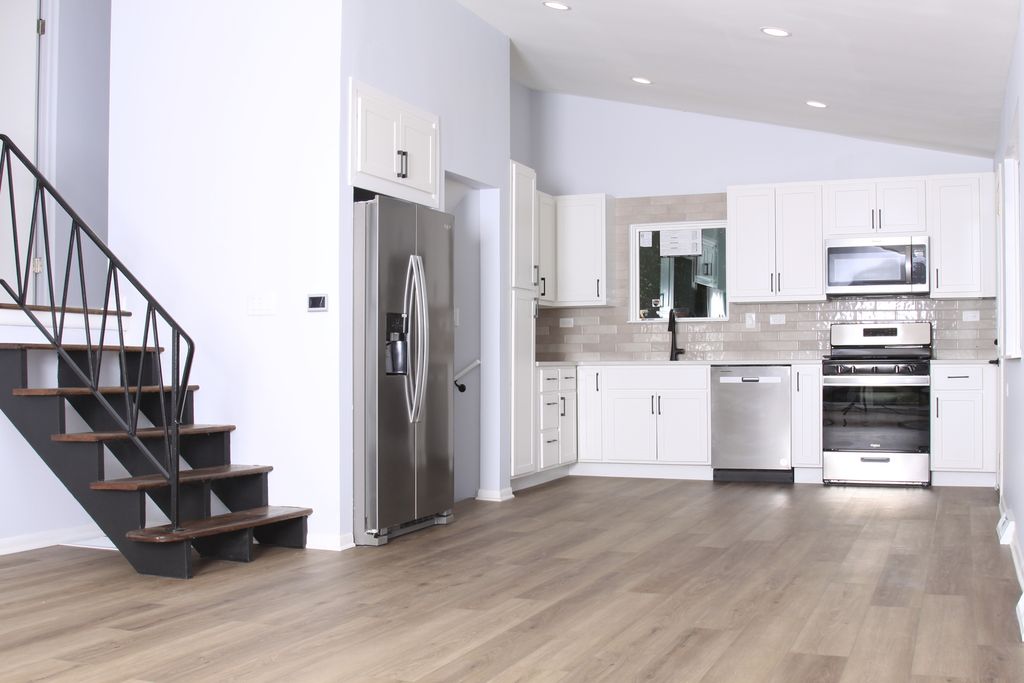 Prepare to be captivated by this stunningly renovated Lombard home, both turn-key and beautifully finished on a massive lot. The moment you enter, a vast open-concept living area welcomes you with vaulted ceilings, flowing seamlessly into a brand-new kitchen equipped with NEW stainless steel appliances, cabinetry, Quartz countertops, backsplash and fixtures. Everything has been done from NEW windows, flooring, lighting, concrete patio and walkways, electric panel, furnace, water heater, garage door and the whole home fully painted inside and out. This home features three spacious bedrooms and two fully remodeled bathrooms, including an added NEW full bath in the newly finished lower level. Set on a rare, oversized lot with limitless potential, this completely transformed, move-in-ready property is a rare find in today's market. Don't miss your chance-schedule your showing today!